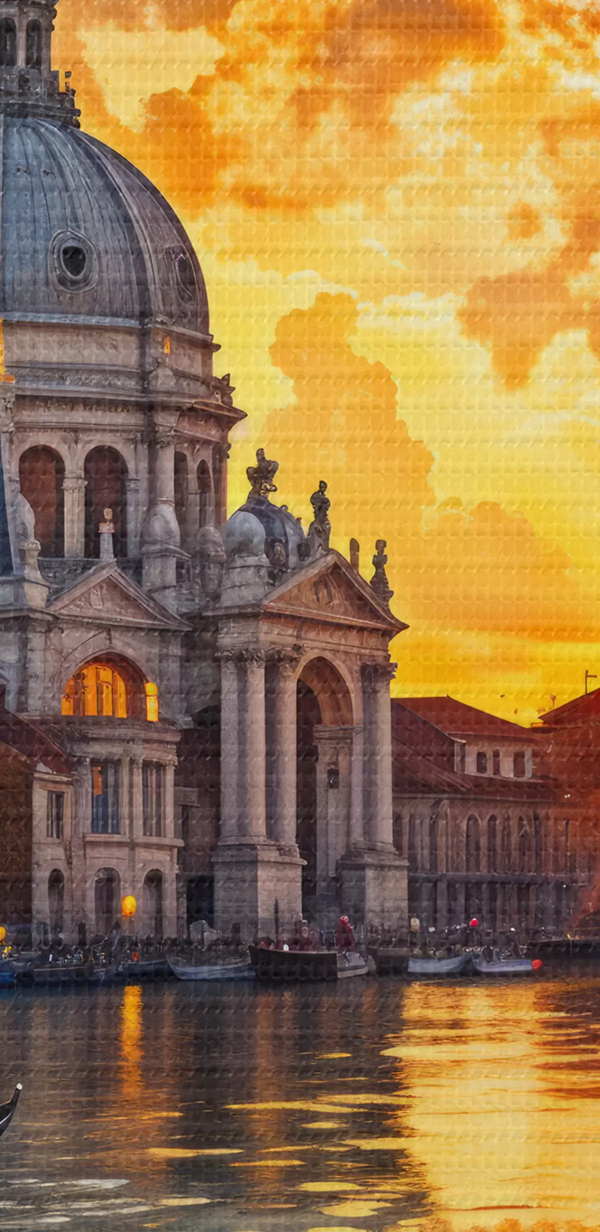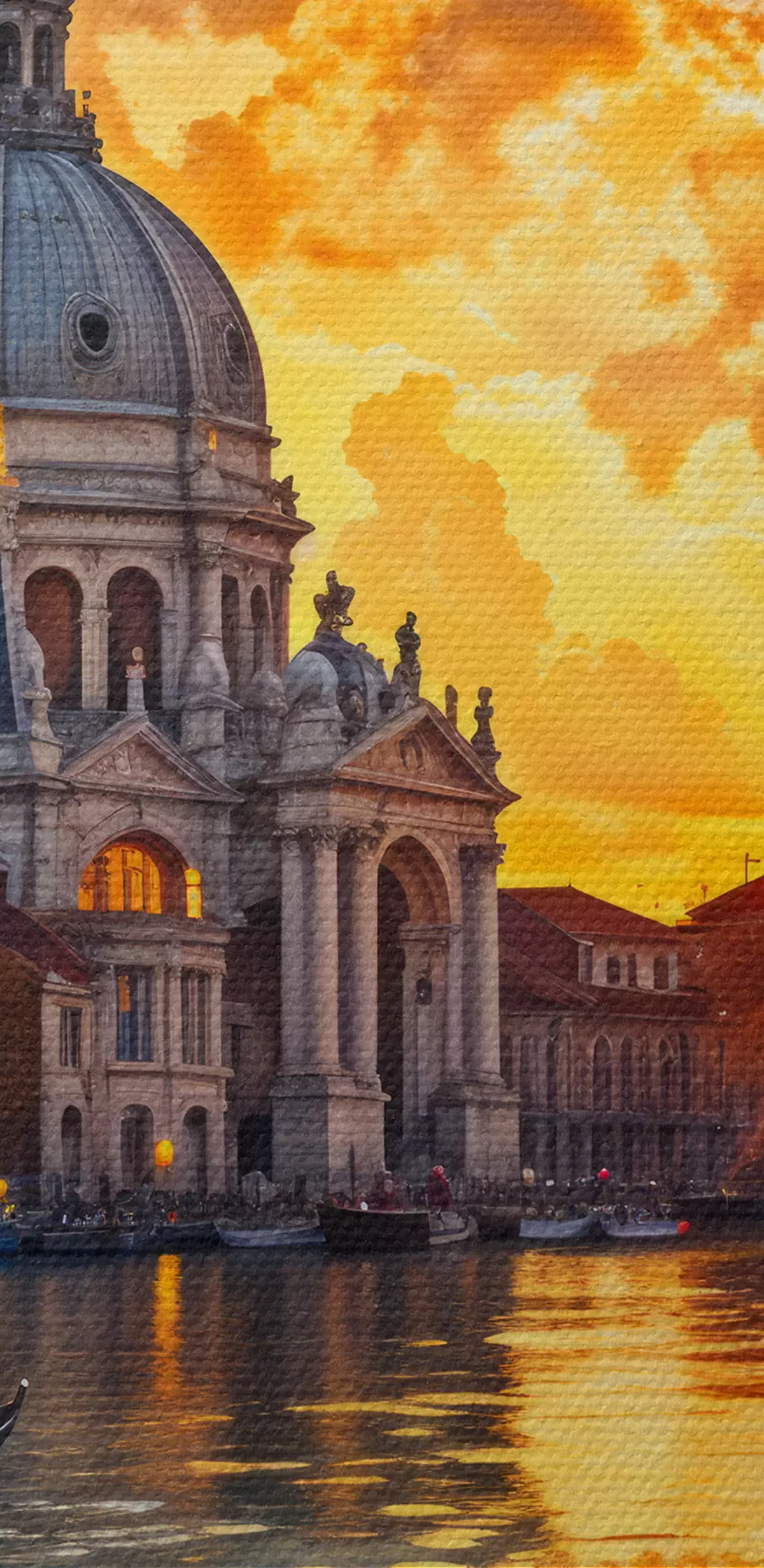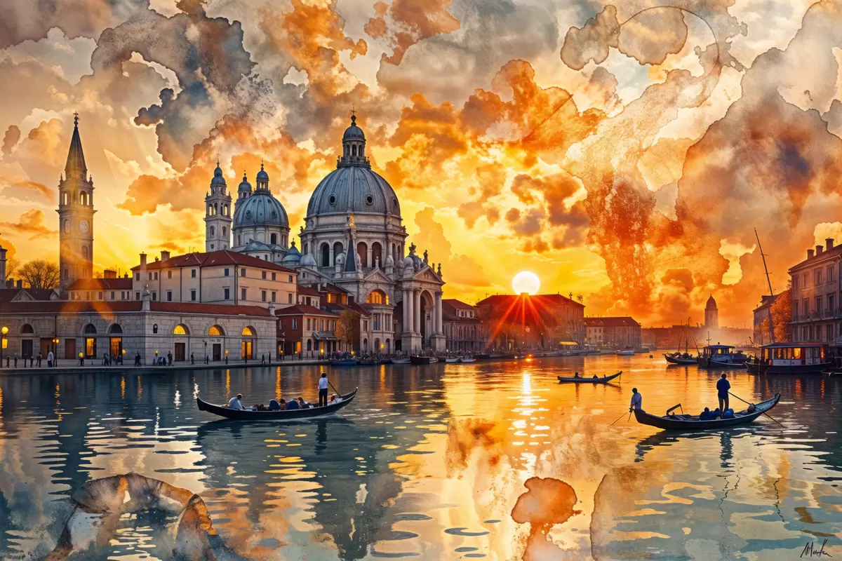 Glezna Krāsains un dramatisks saulriets virs Lielā kanāla Venēcijā, Itālijā, akvareļu mākslā Nr s40027