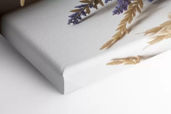 Glezna Violetu ziedu pušķis, ieskaitot peonijas un lavandu, ar kviešu kātiem uz gaiša fona Nr s40030