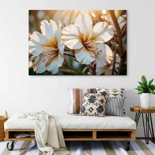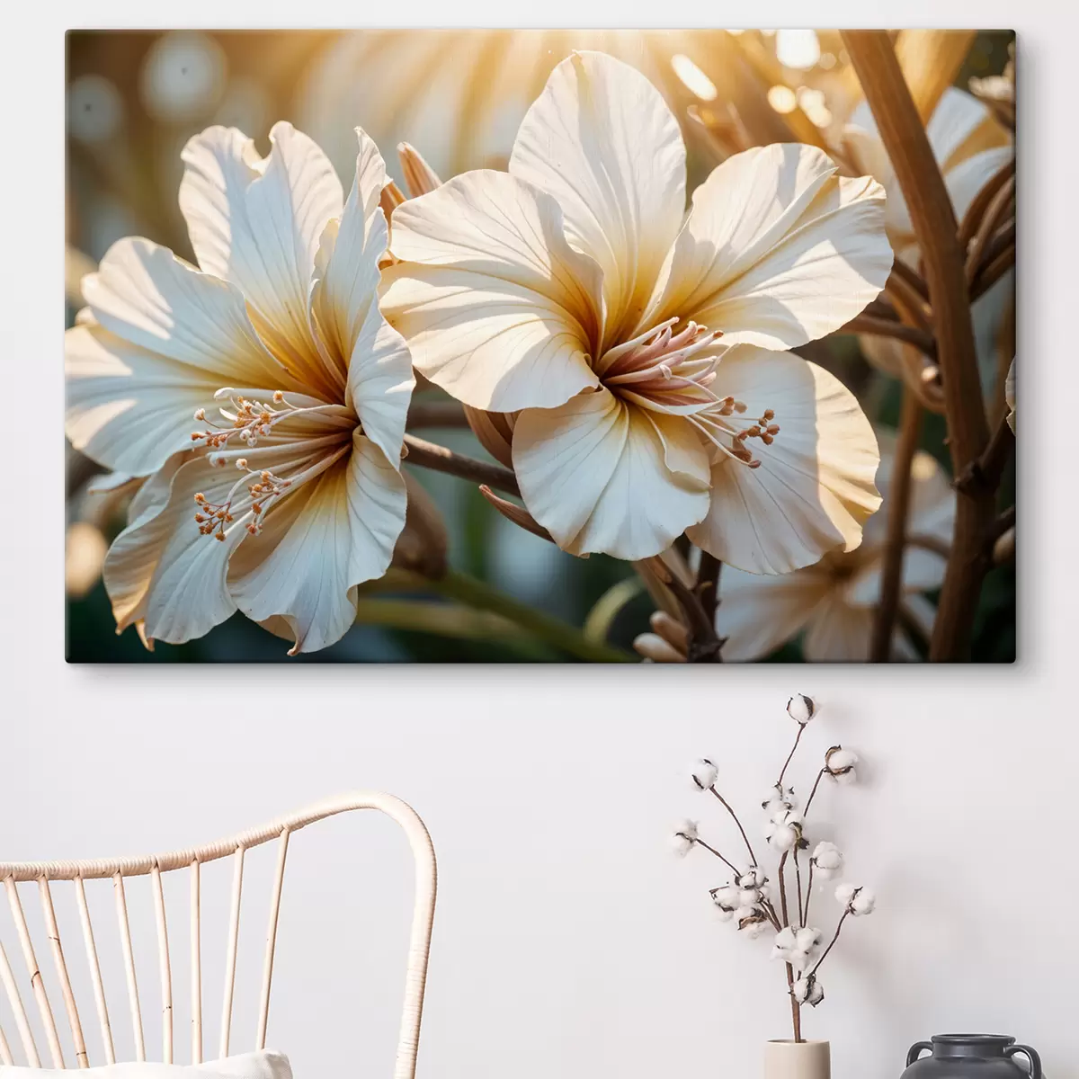 Glezna Zied balti un oranži hibiska ziedi ar mīkstu fokusa fonu Nr s40035