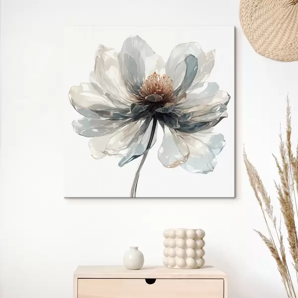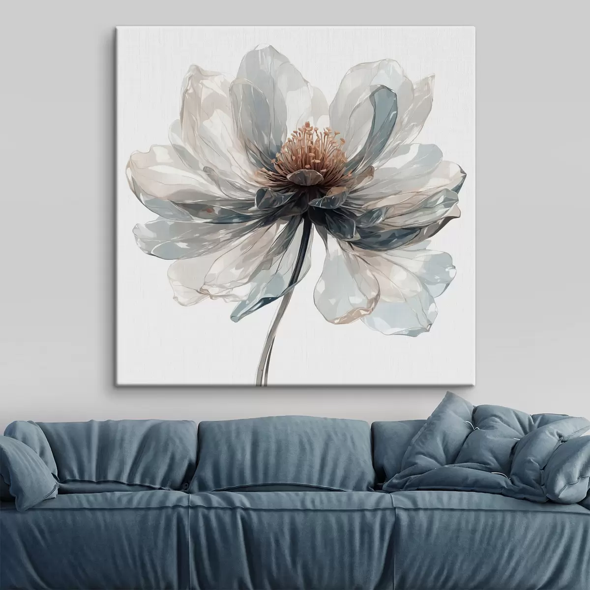 Glezna Caurspīdīgs zils zieds uz balta fona Nr s40067
