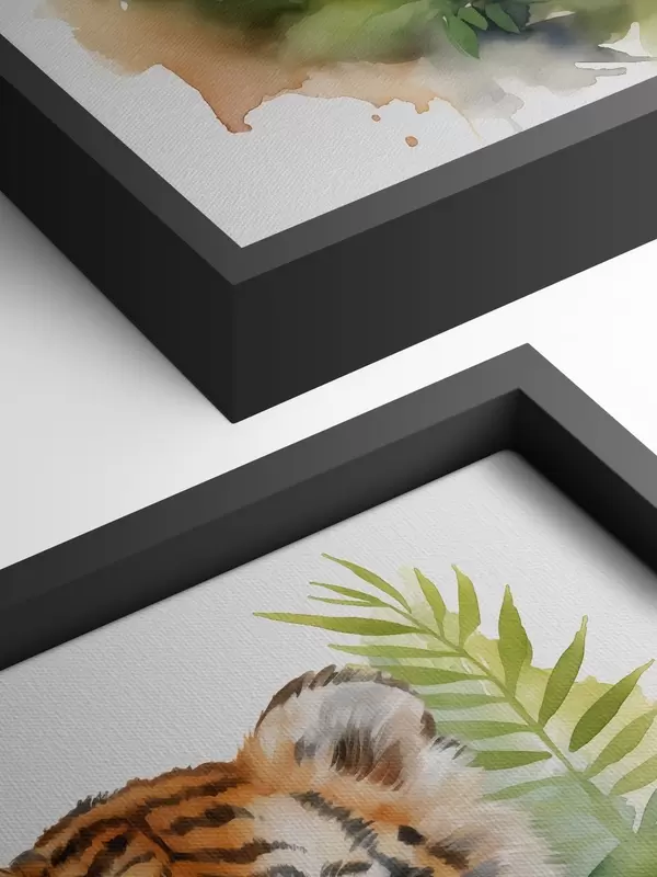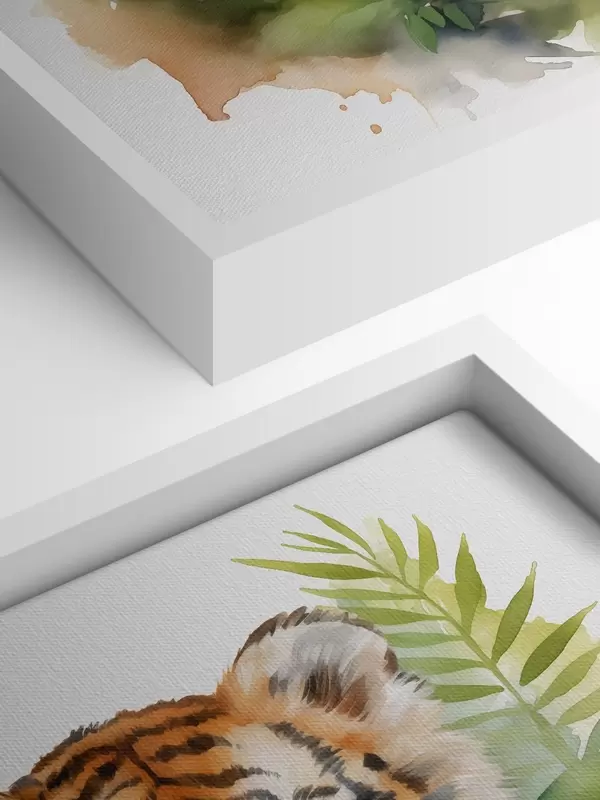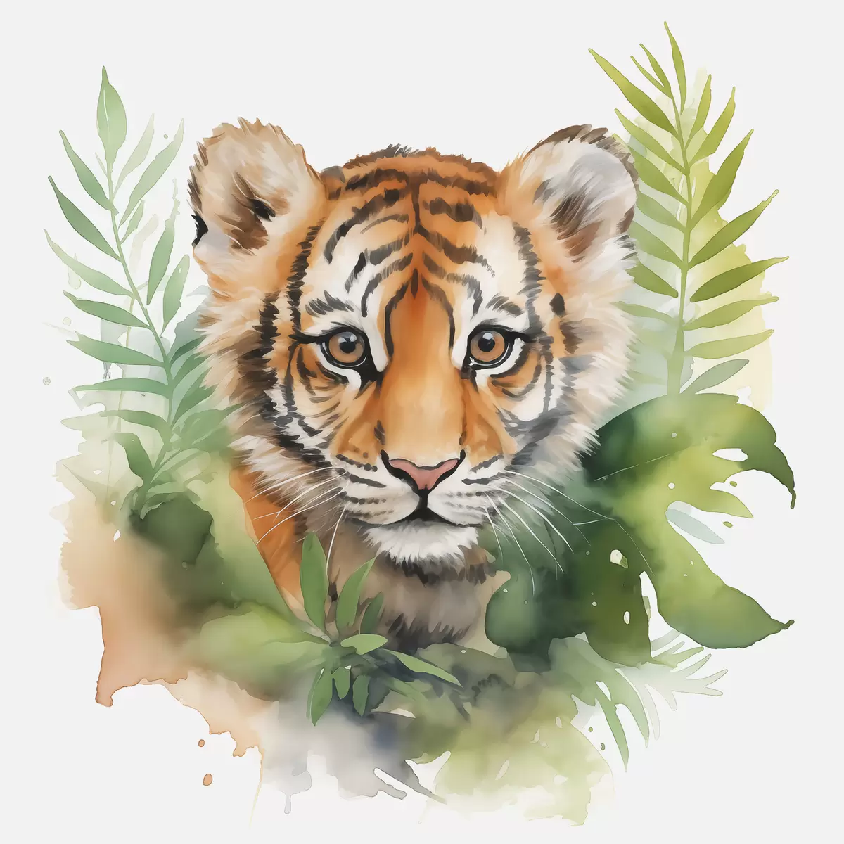 Glezna Tīģera portrets tropu lapās akvarelī s40090