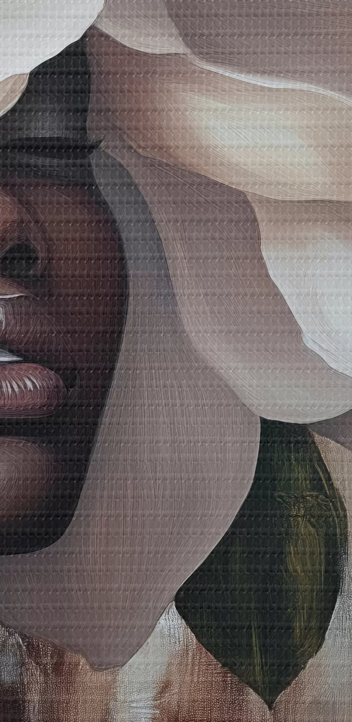 Smalkais diegu pinums uz šī audekla atgādina profesionālu mākslinieku audeklu virsmu.