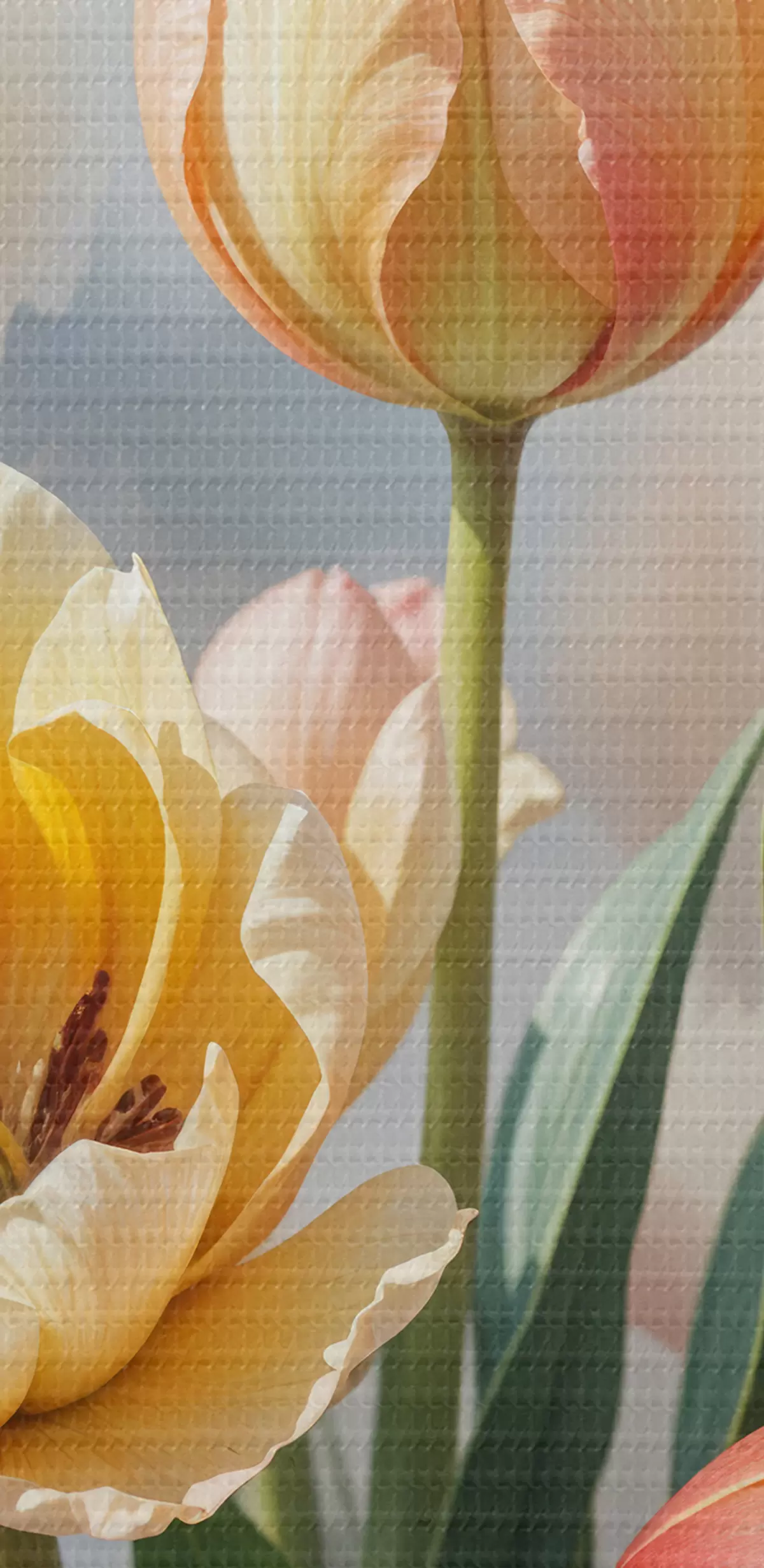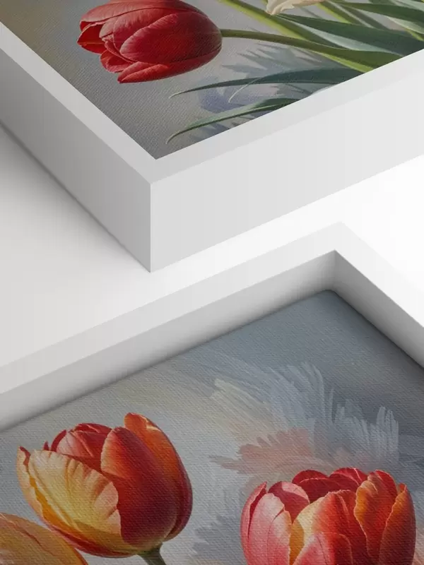 Glezna Krāsainas tulpes dažādos sarkanos, oranžos un dzeltenos toņos uz gaiša fona s40167