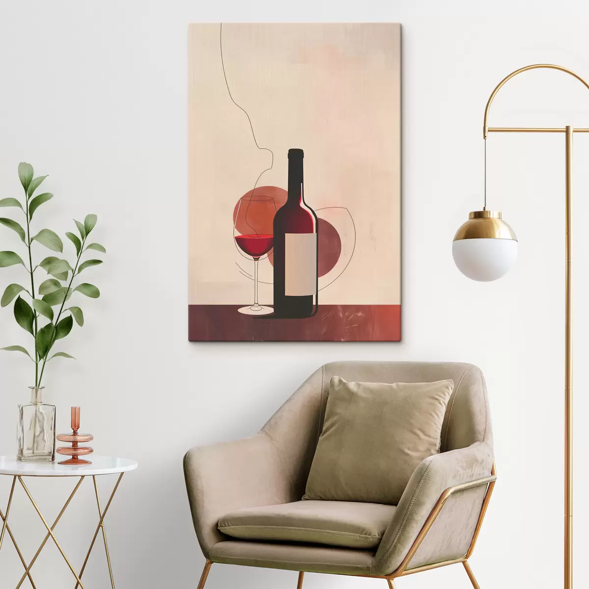 Glezna Vīna pudele un glāze ar vīnu s40191