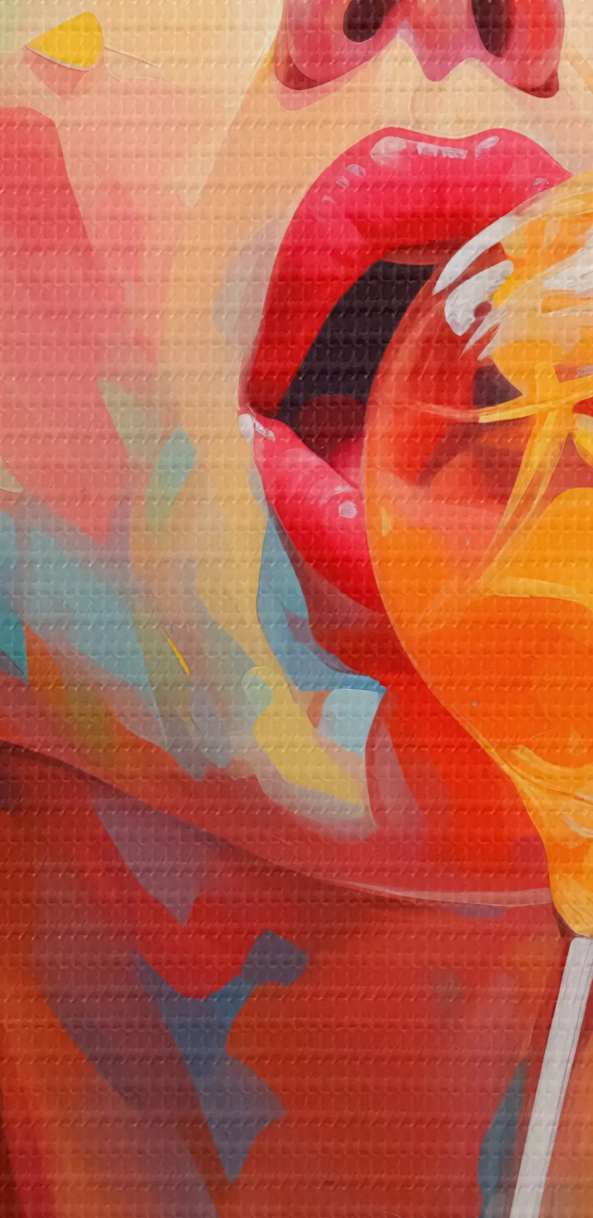 Glezna Meitene ar cirtainiem matiem spilgtās krāsās laiza konfekti Nr s40213