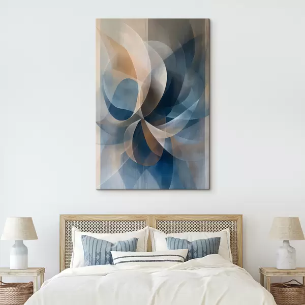 Glezna zils bēšs abstrakts zieds Nr s40245