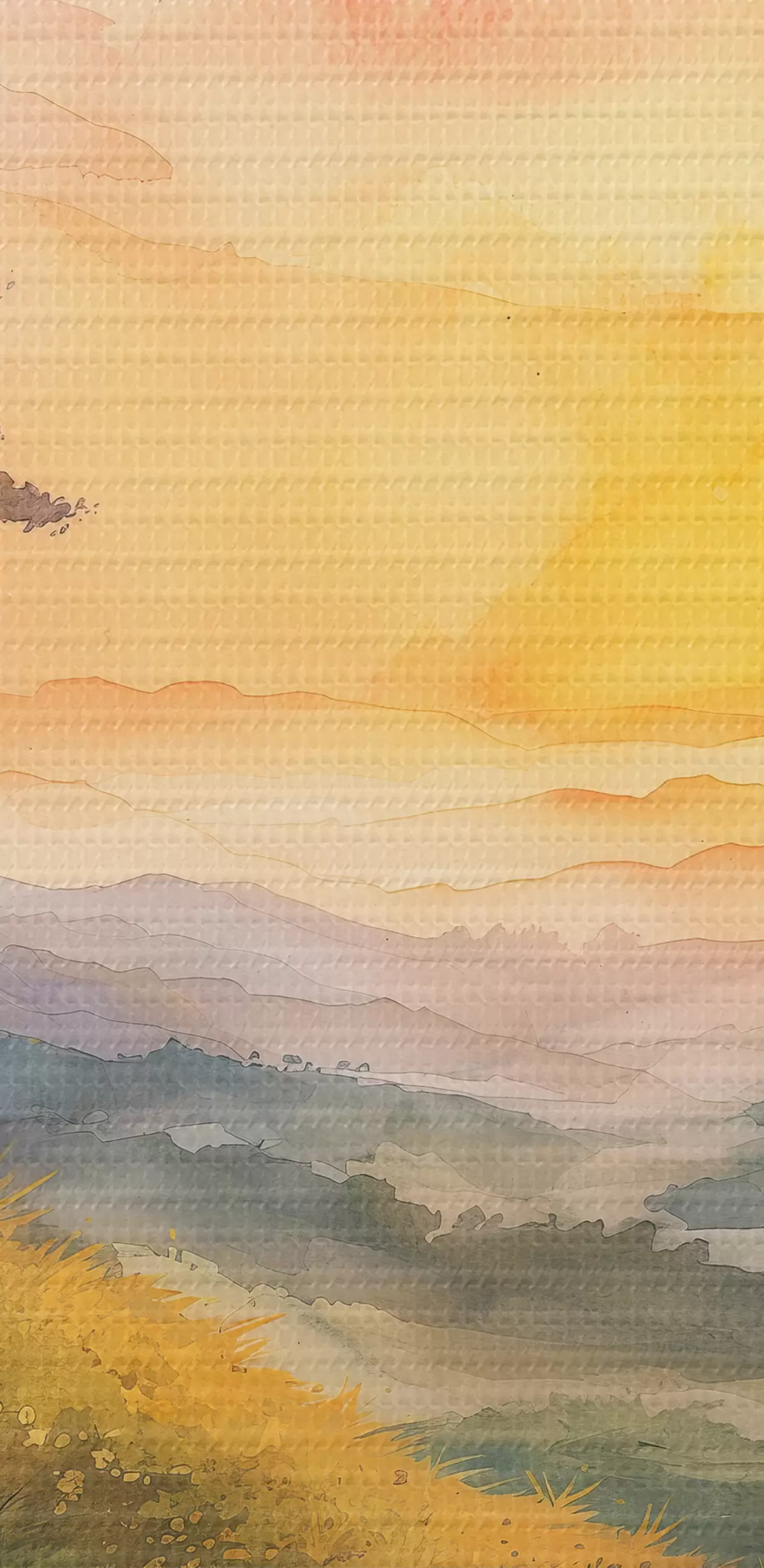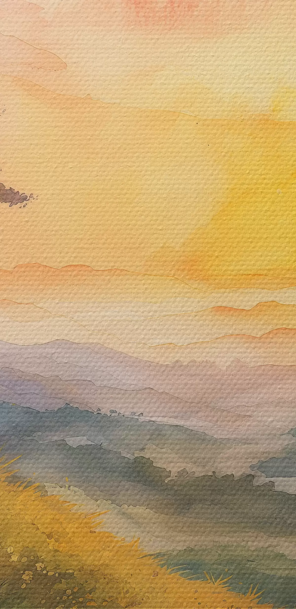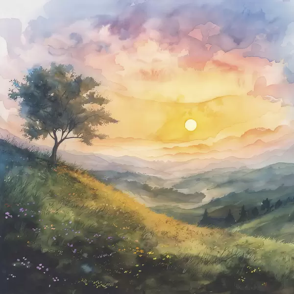 Glezna Pļava ar pakalniem un kokiem, ziedi, akvarelis Nr s40303