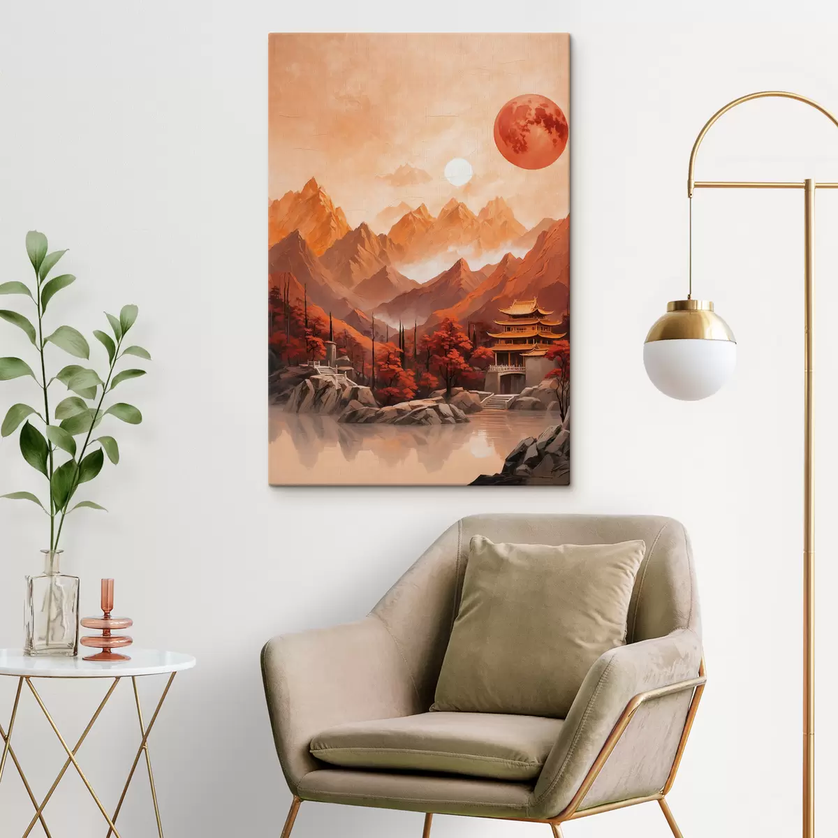 Glezna Ķīniešu vēsturiska ēka kalnos Nr s40330