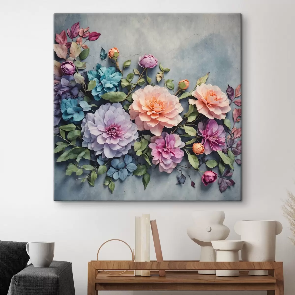 Glezna Ziedi un lapas uz zila fona Nr s40346