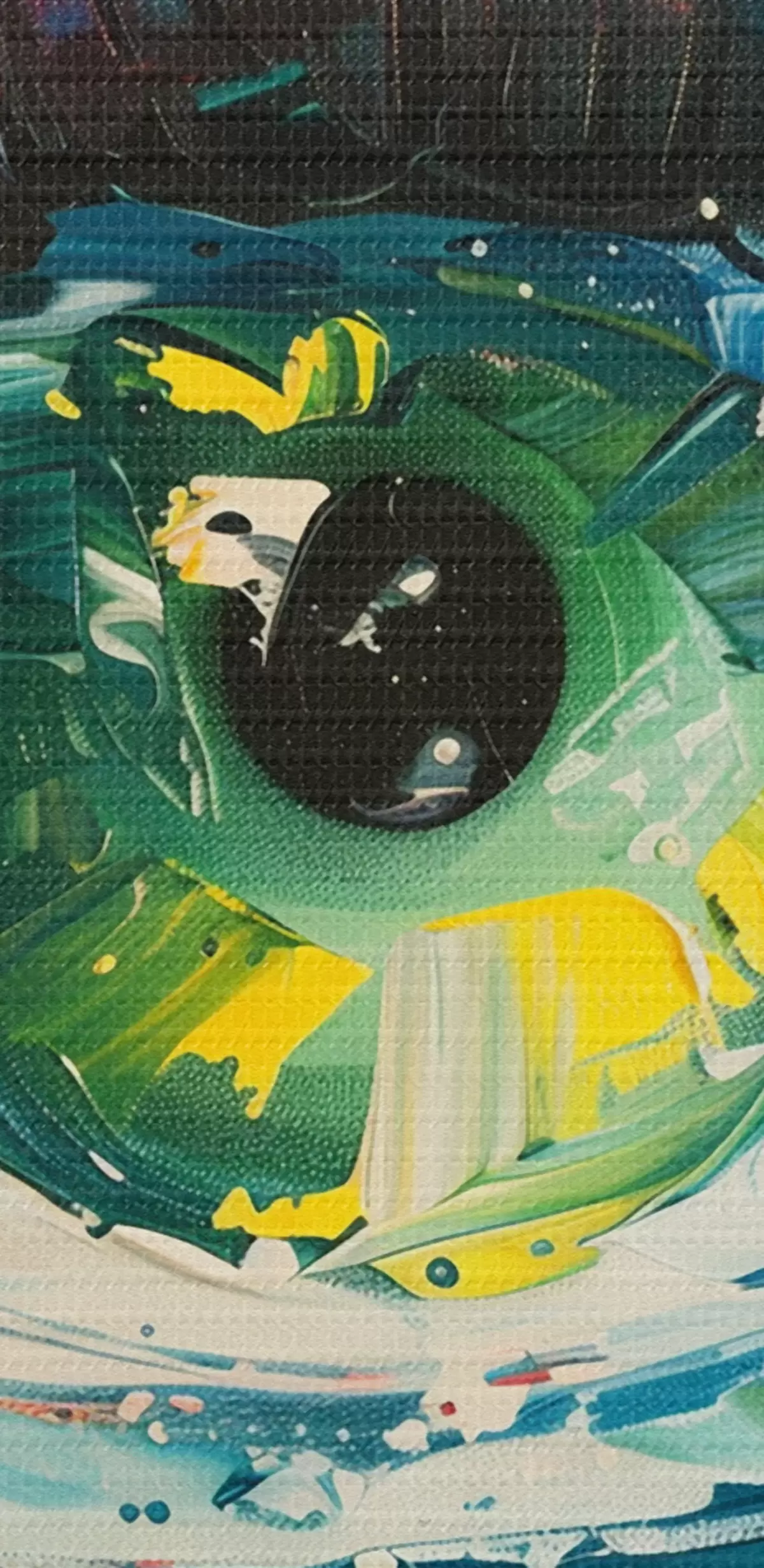 Smalkais diegu pinums uz šī audekla atgādina profesionālu mākslinieku audeklu virsmu.
