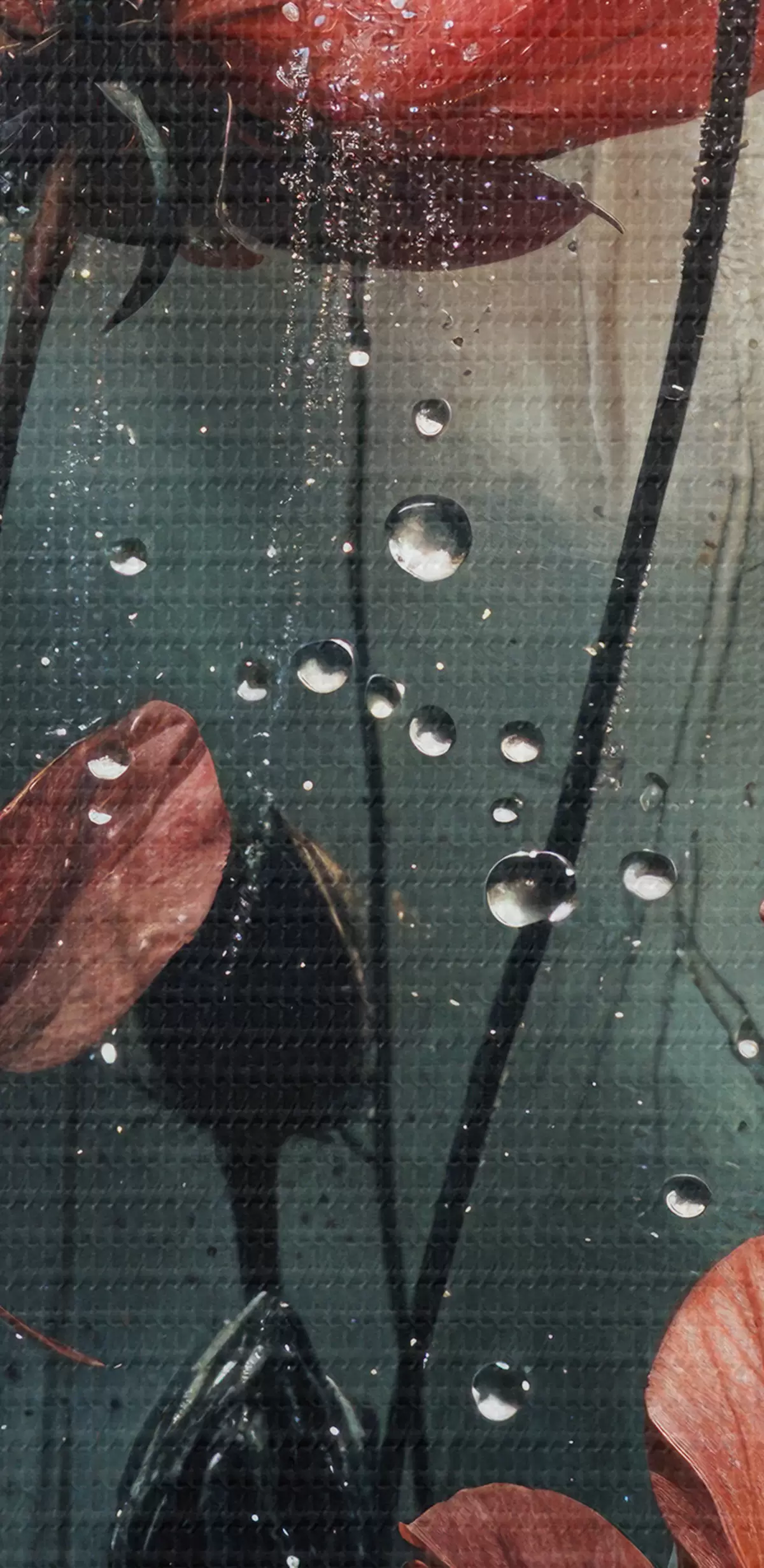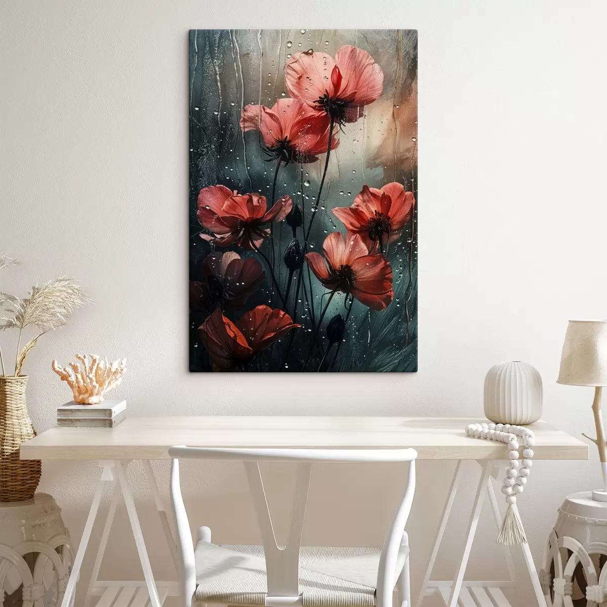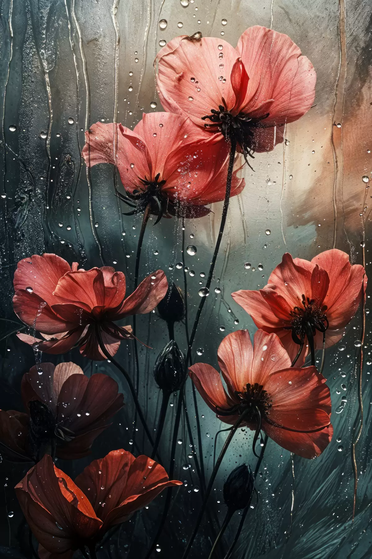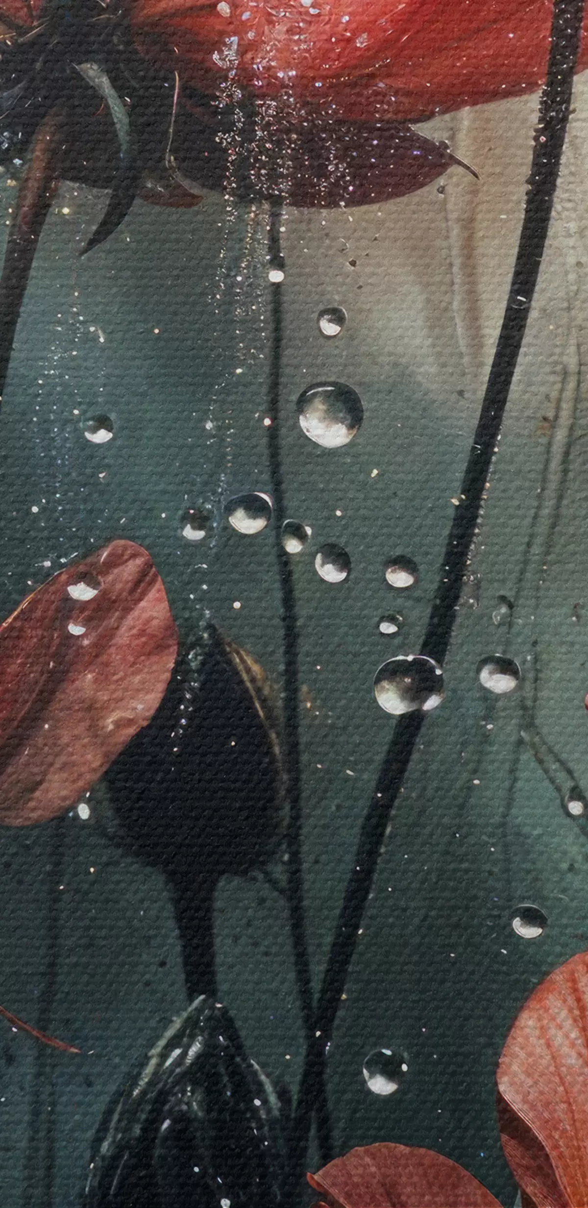 Glezna Sarkani ziedi ar ūdens pilieniem uz neskaidra fona Nr s40412
