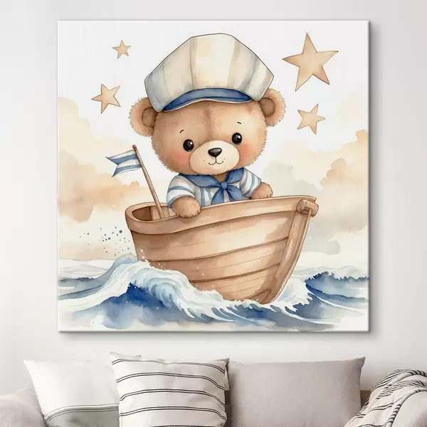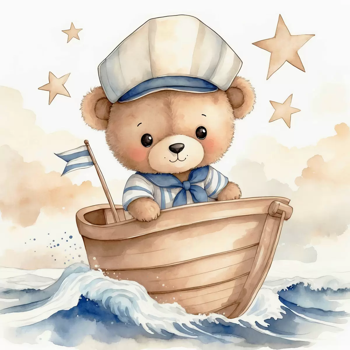 Glezna Jauks akvareļu lācis laivā Nr s40428