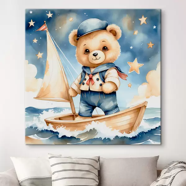 Glezna Jauks akvareļu lācis laivā ar zvaigznēm debesīs s40429