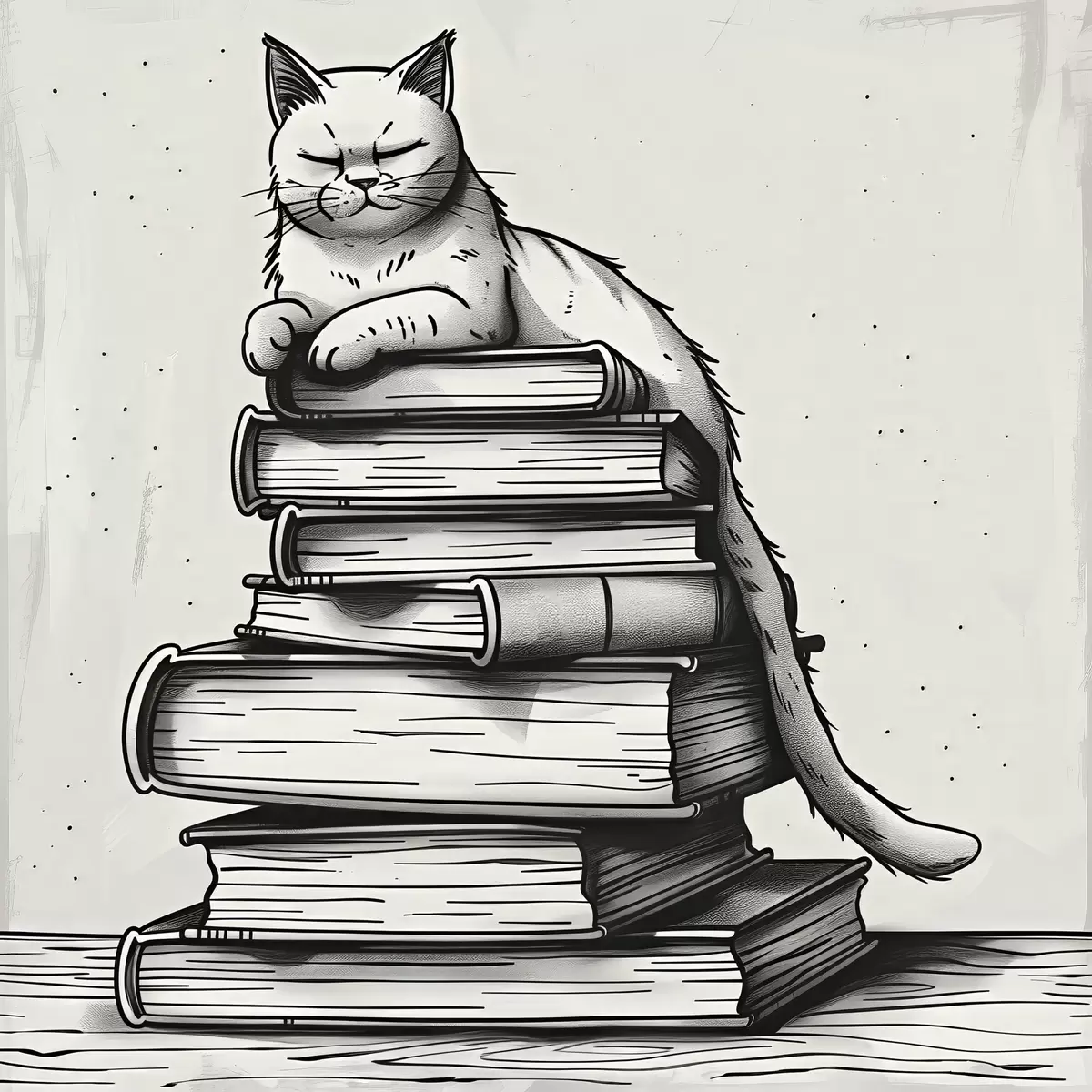 Glezna Melnbalts kaķis uz grāmatu kaudzes s40435