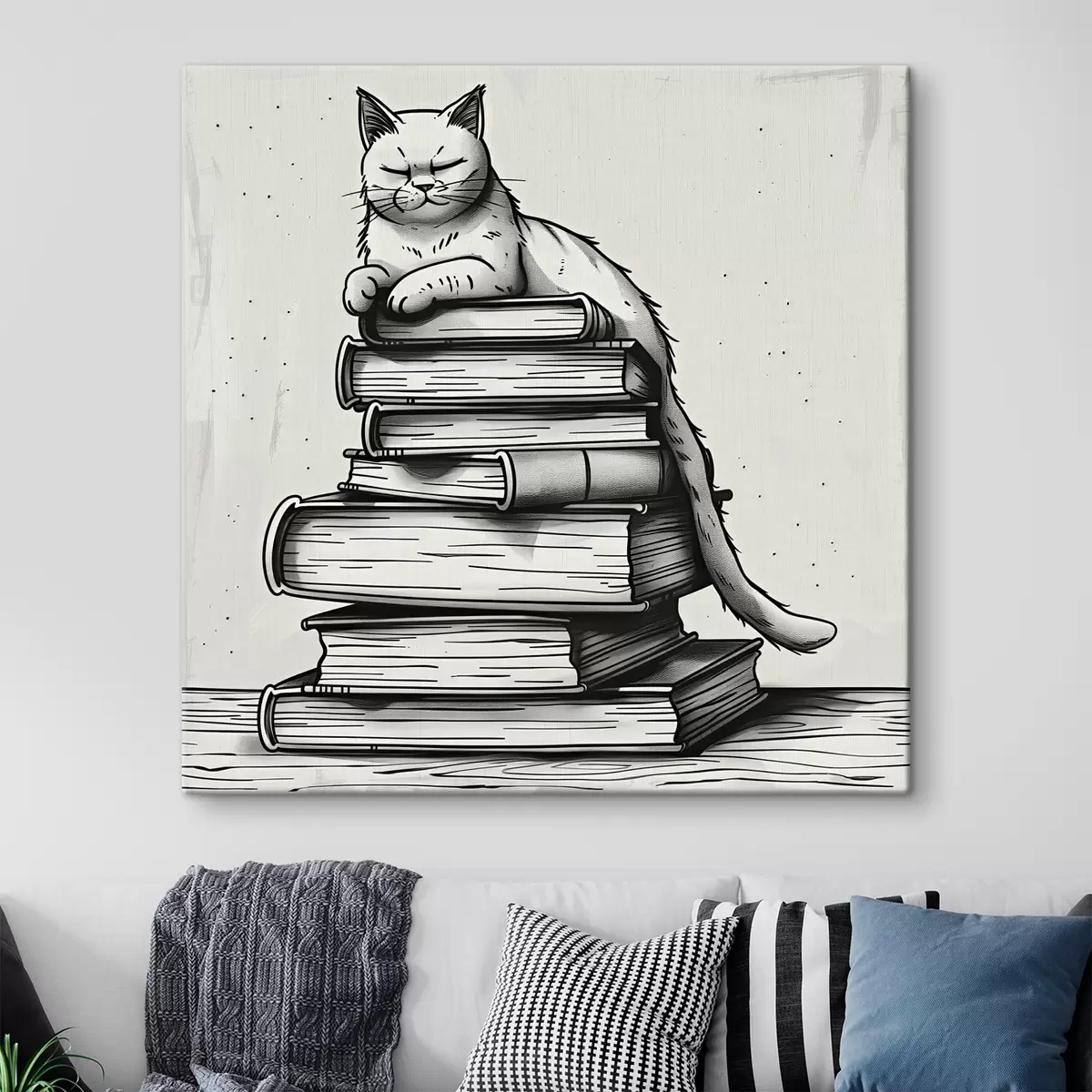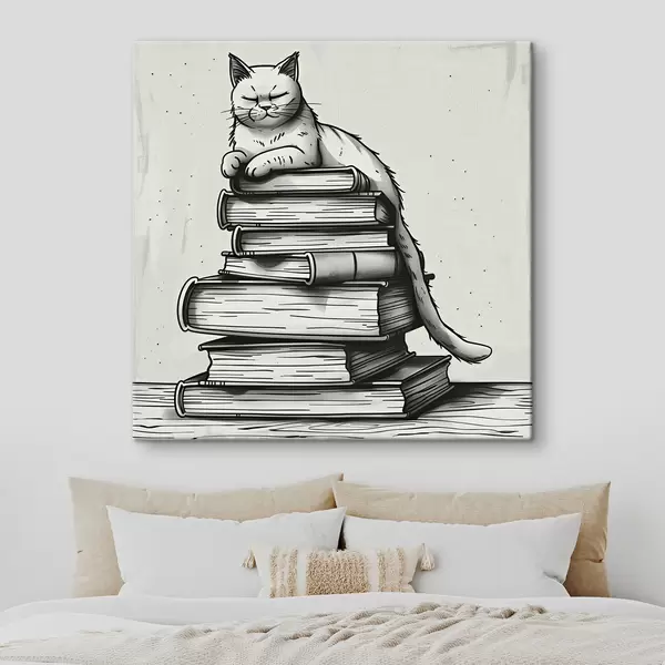 Glezna Melnbalts kaķis uz grāmatu kaudzes Nr s40435