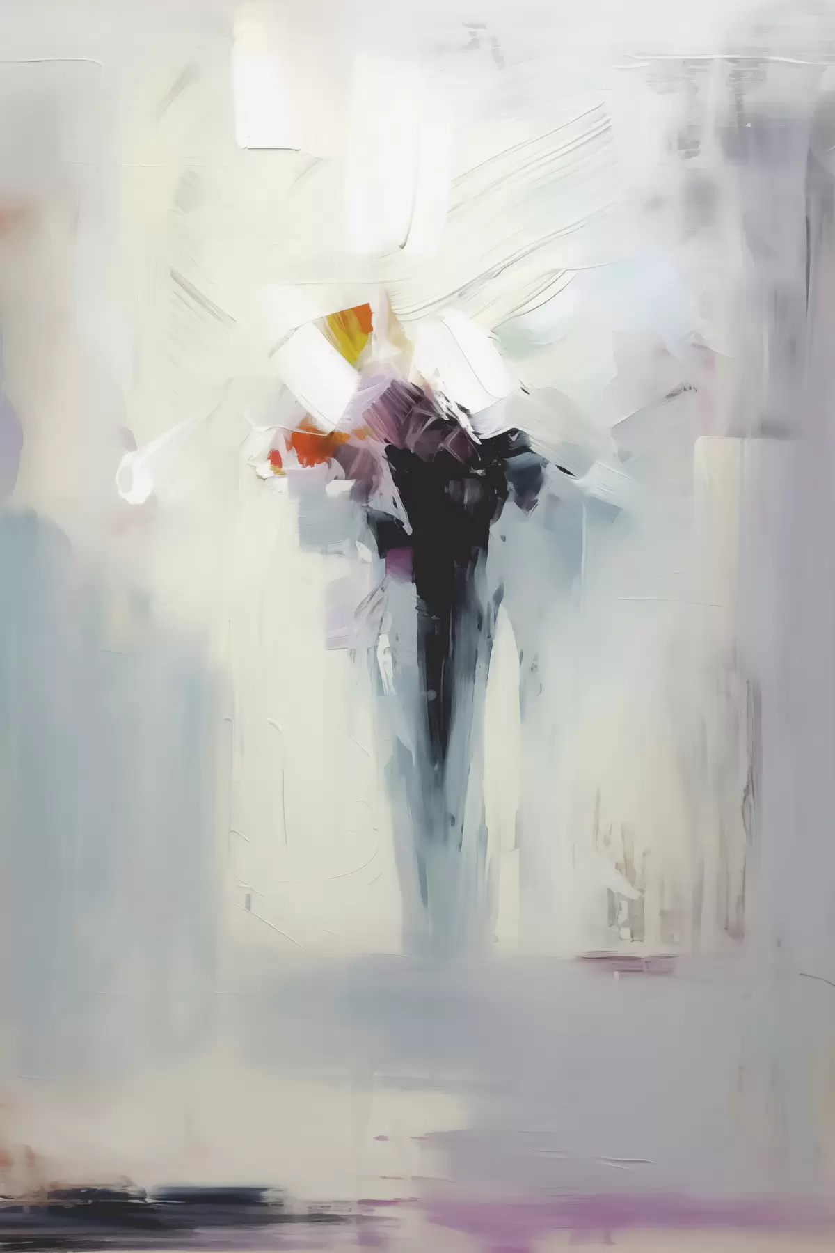 Glezna Astrālās abstrakcijas melns plankums uz balti pelēka fona, otas triepienu imitācija Nr s40526