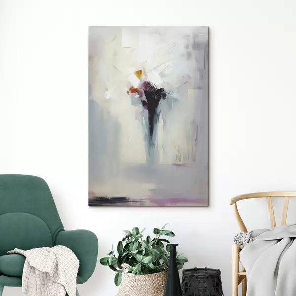 Glezna Astrālās abstrakcijas melns plankums uz balti pelēka fona, otas triepienu imitācija s40526