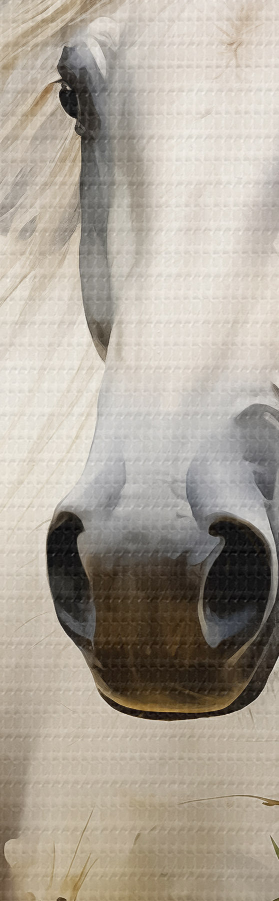 Glezna Balts zirgs zālē starp margrietiņām Nr s40533