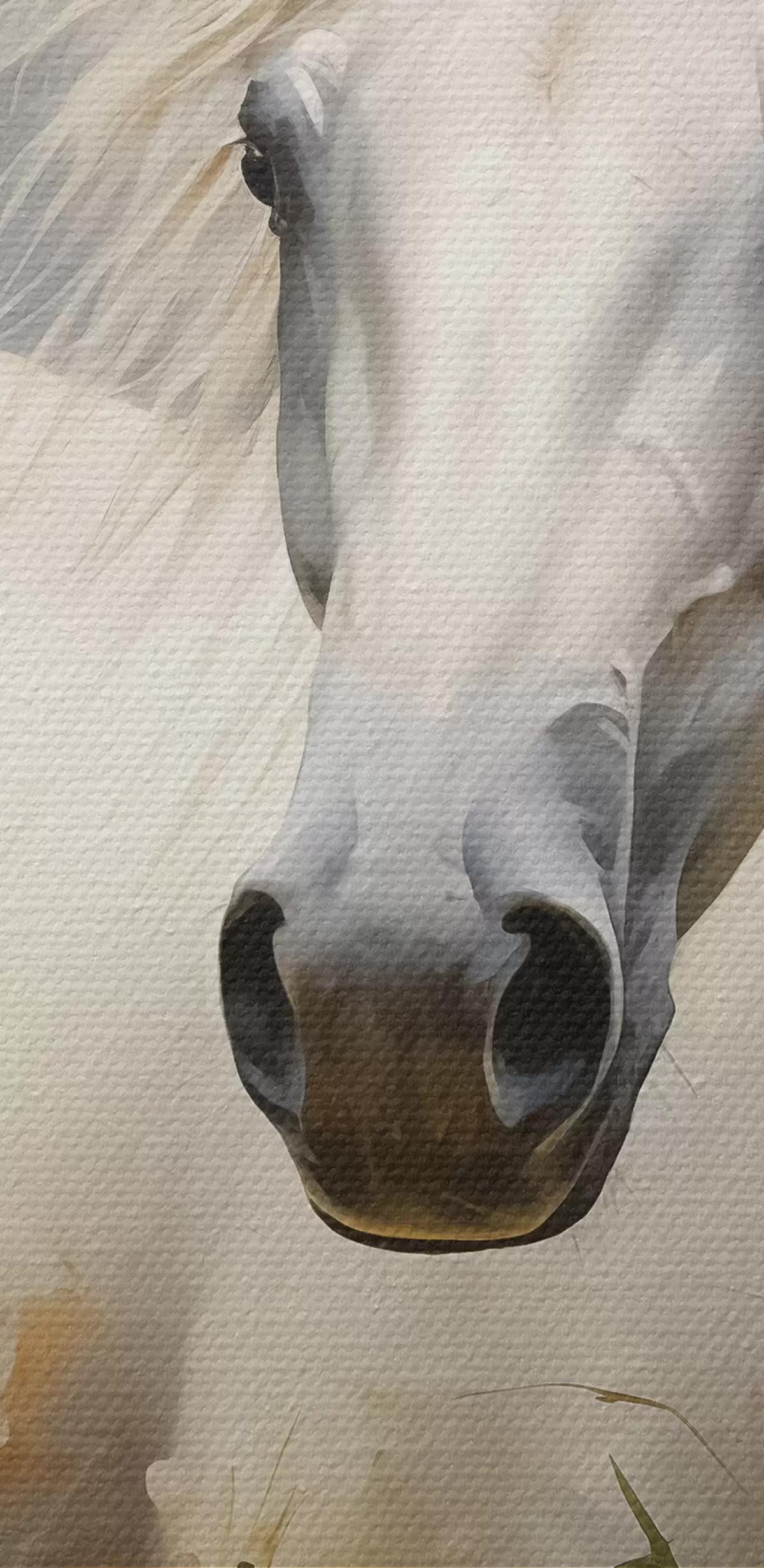 Glezna Balts zirgs zālē starp margrietiņām Nr s40533