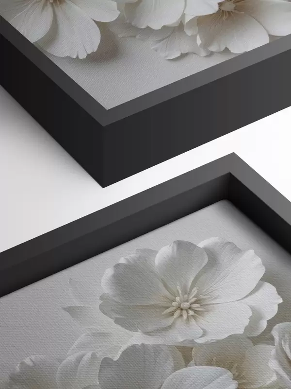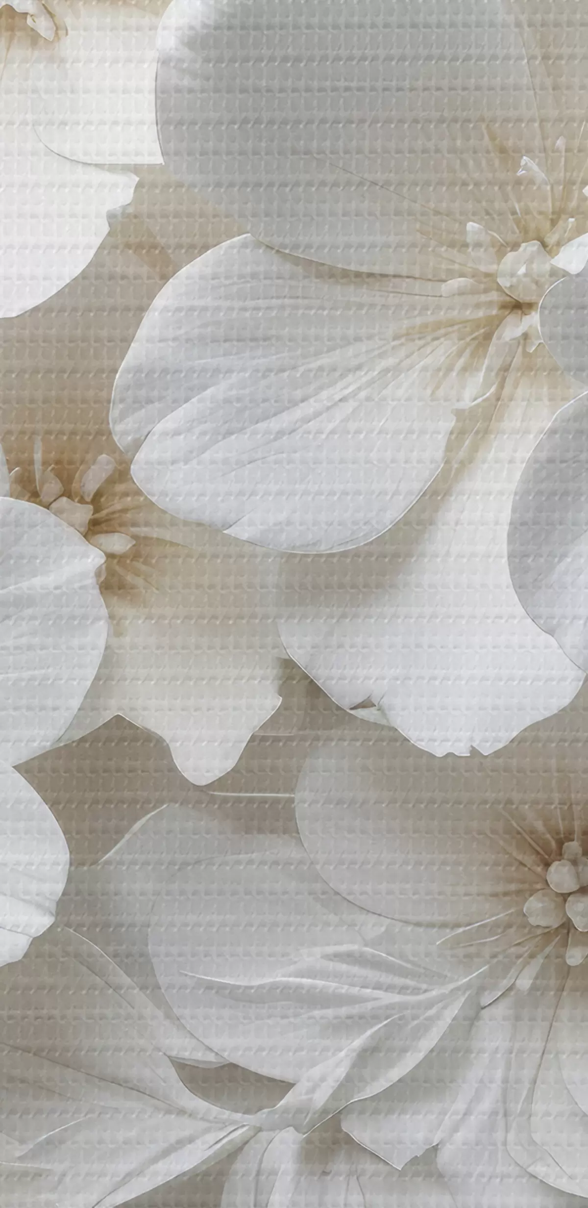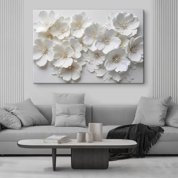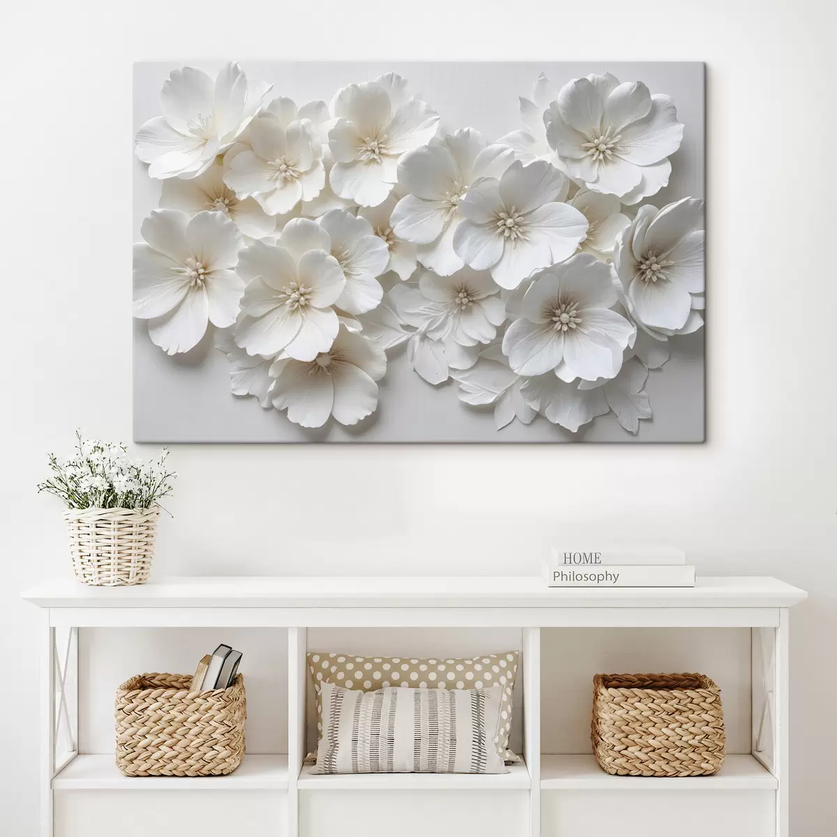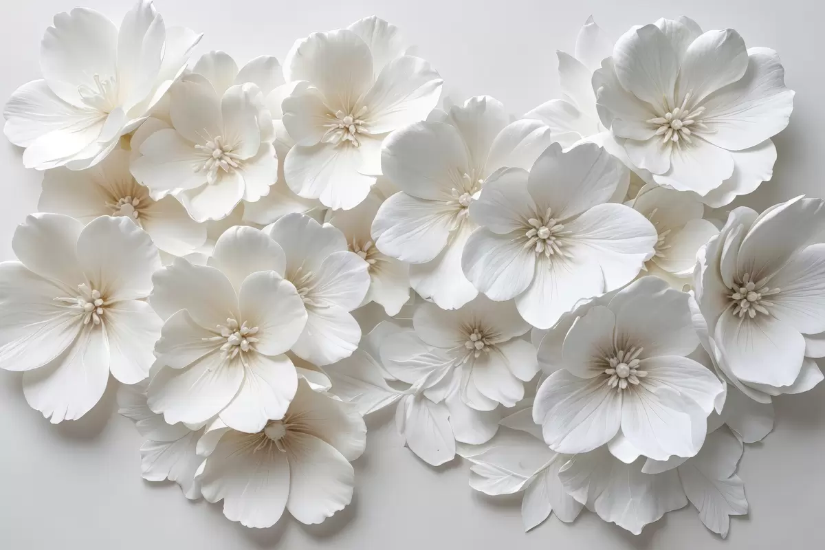 Glezna Balti ziedi ar smalkām ziedlapiņām, kas sakārtotas skaistā ziedu rakstā uz gaiša fona Nr s40548