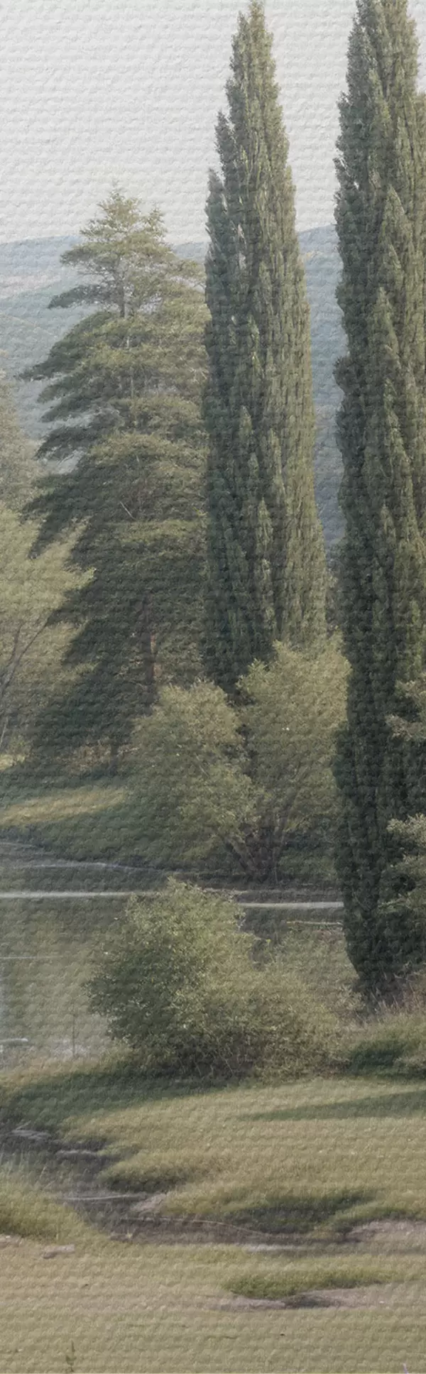 Smalkais diegu pinums uz šī audekla atgādina profesionālu mākslinieku audeklu virsmu.