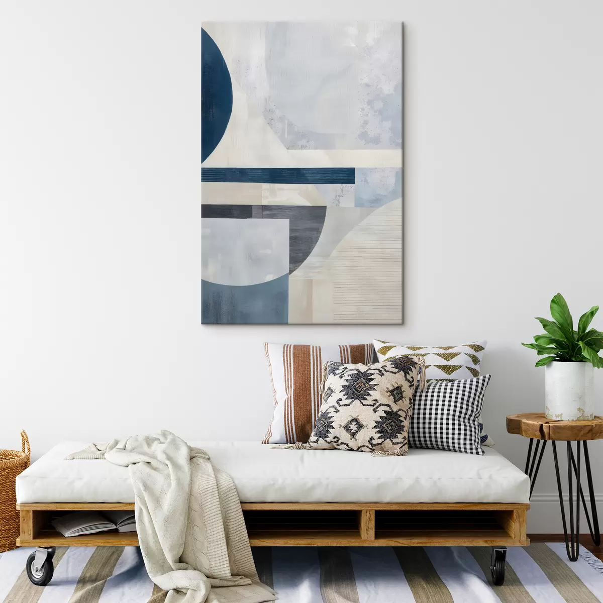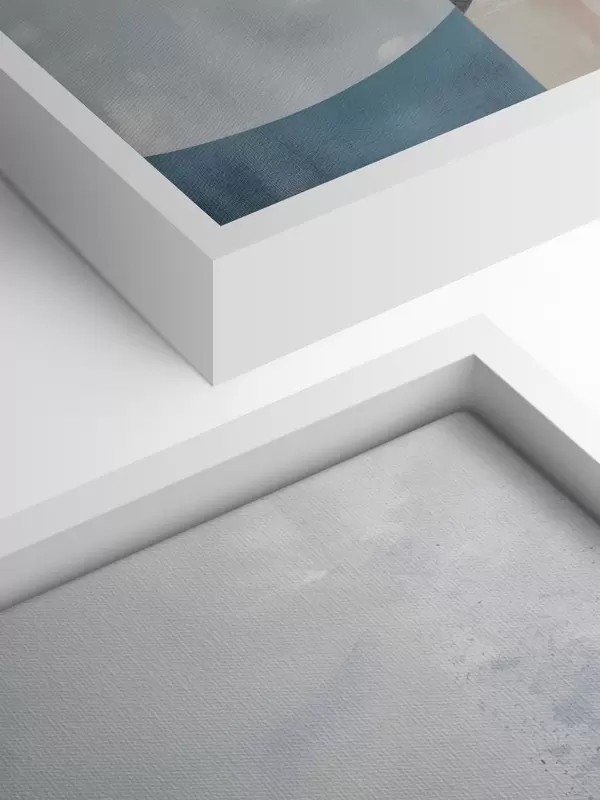 Glezna Minimālistiska abstrakcija ar ģeometriskām formām un faktūrām zilos, pelēkos un baltos toņos Nr s40596
