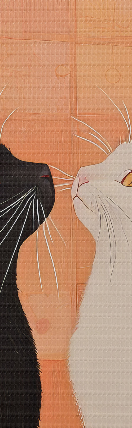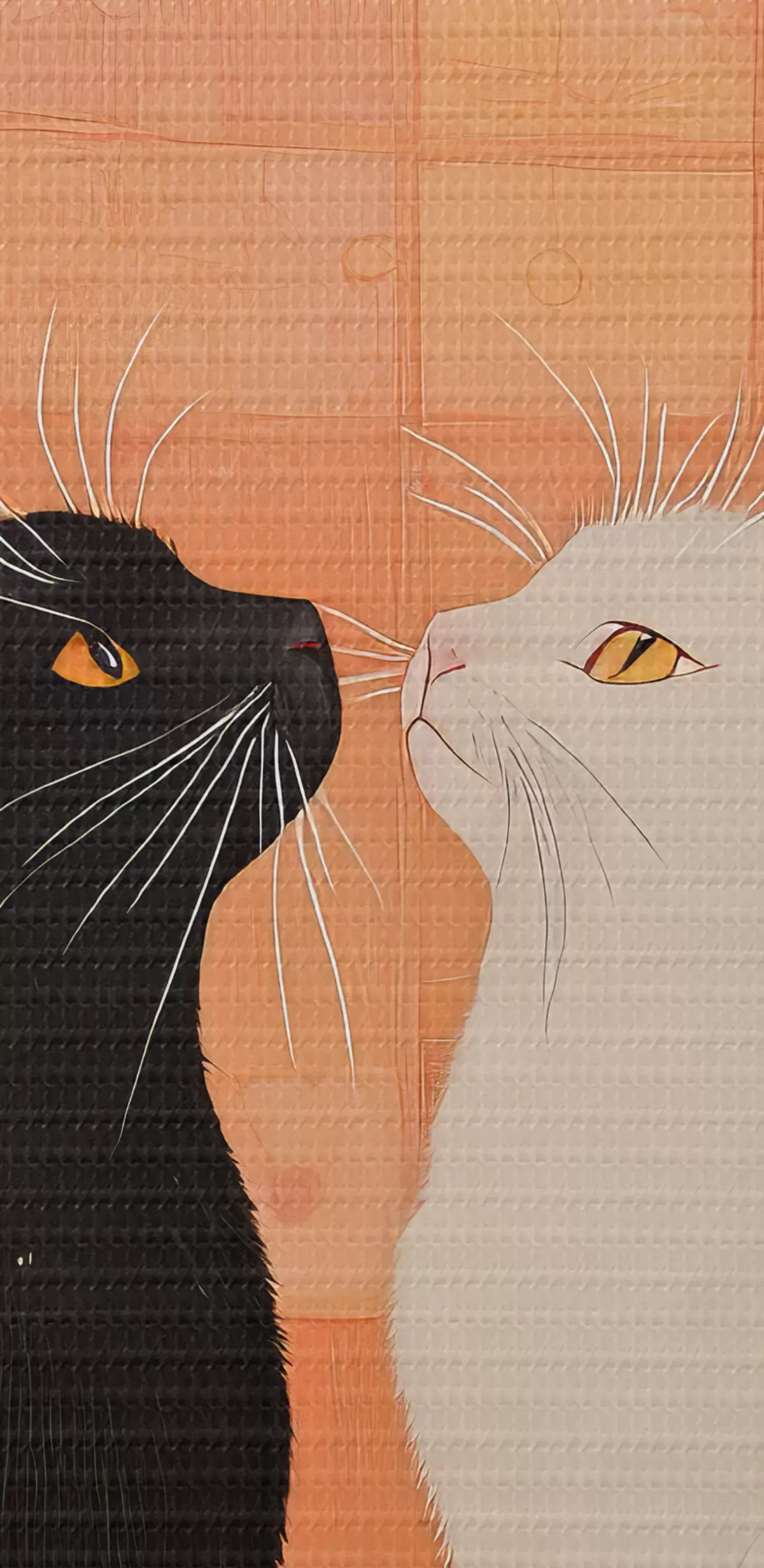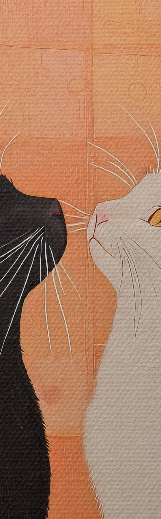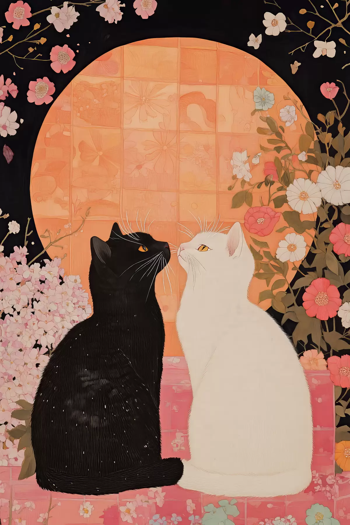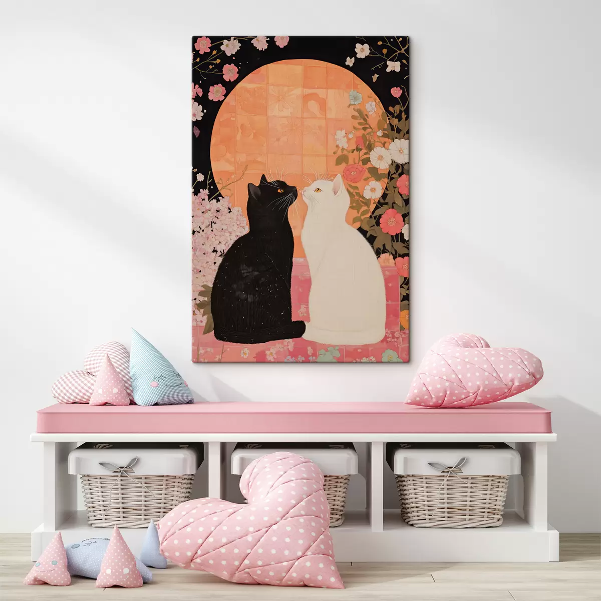 Glezna Melns un balts kaķis meklē gudrs viens uz otru saulrieta laikā Nr s40669