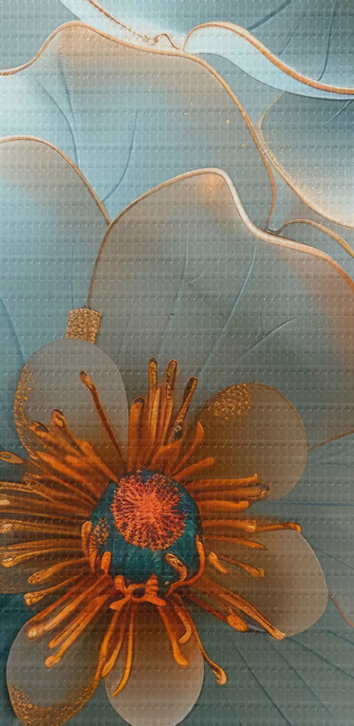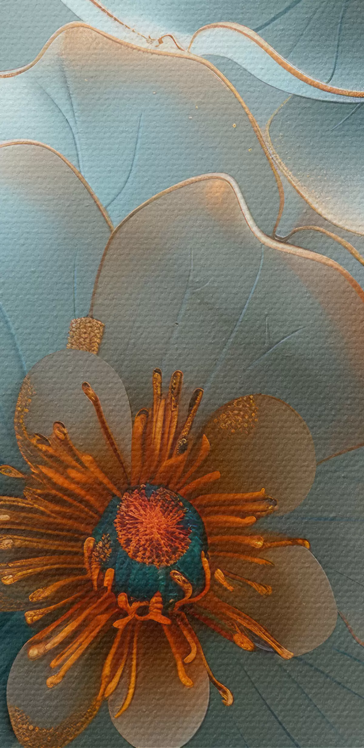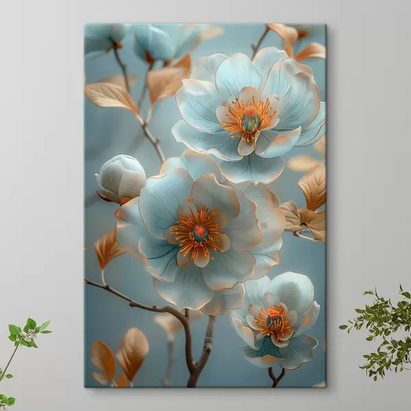 Glezna Zilas peonijas ar oranžu akcentu Nr s40676
