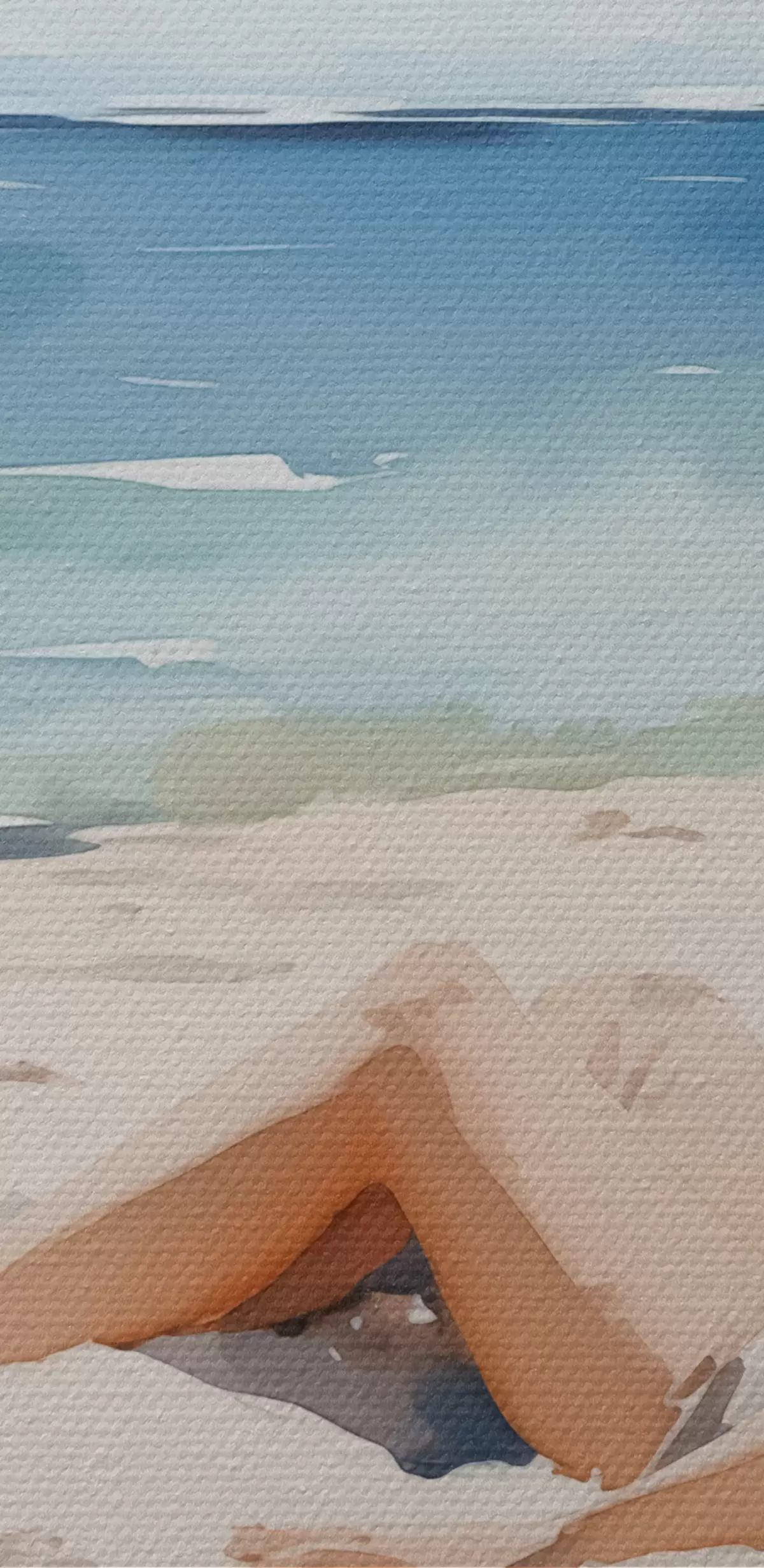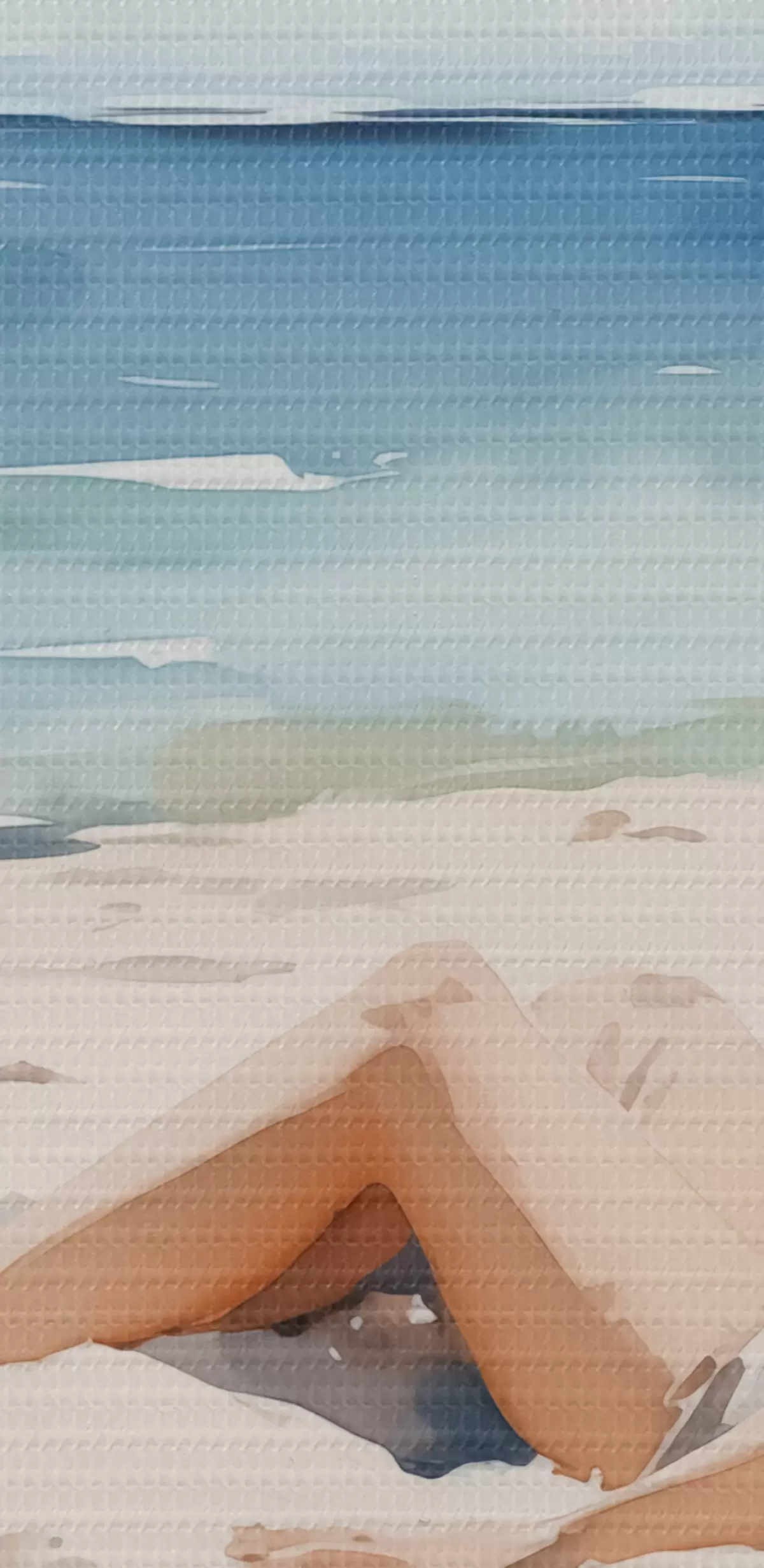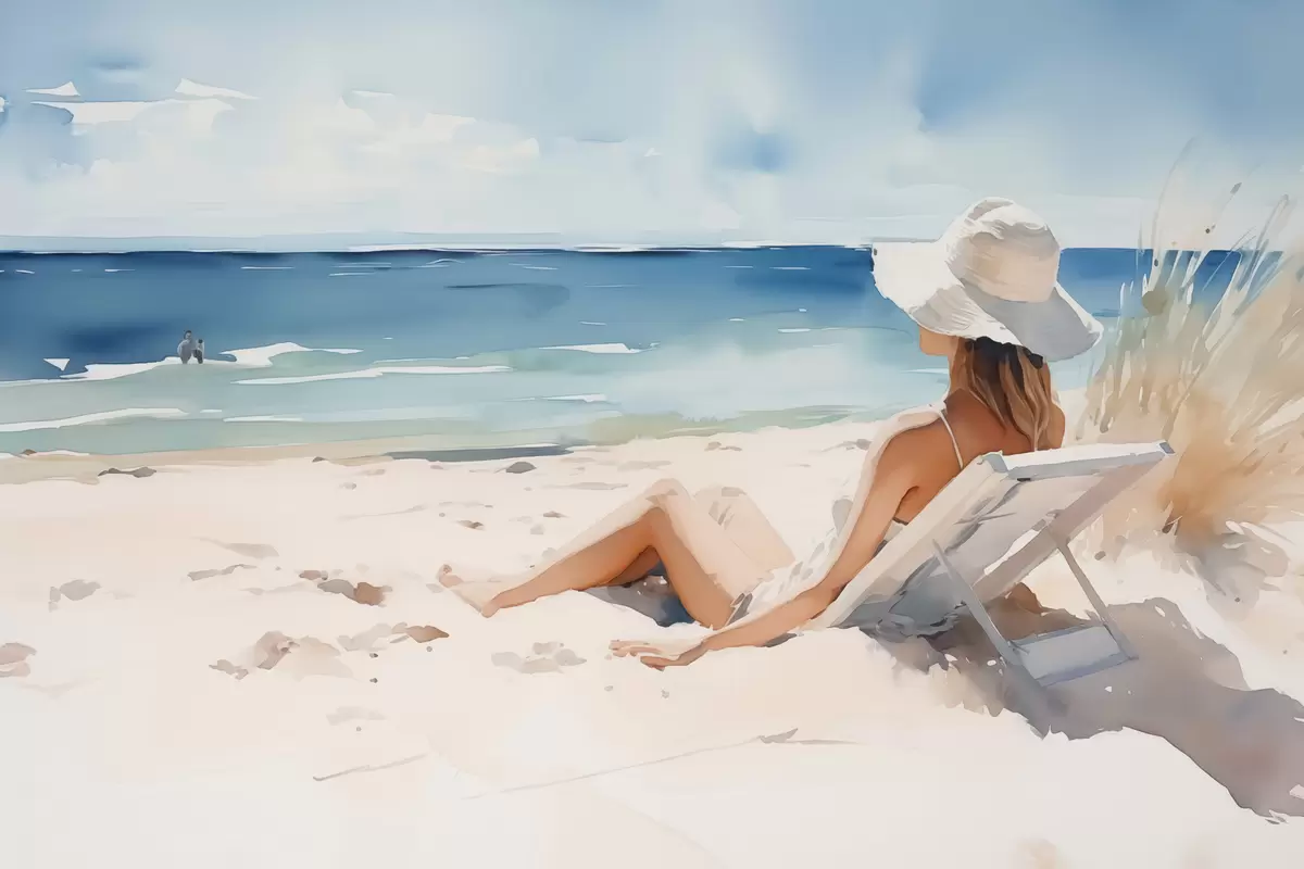 Glezna Meitene atpūšas pludmalē pie jūras akvarelis Nr s40679