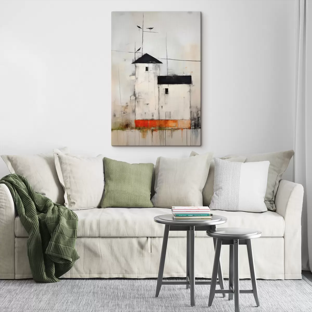 Glezna Abstrakta aina ar putniem un ēku s40685