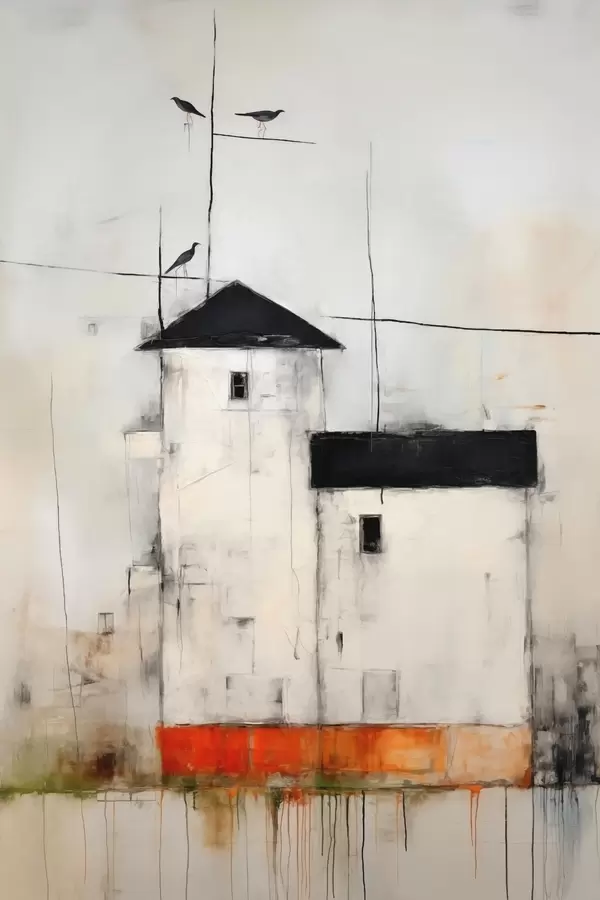 Glezna Abstrakta aina ar putniem un ēku s40685