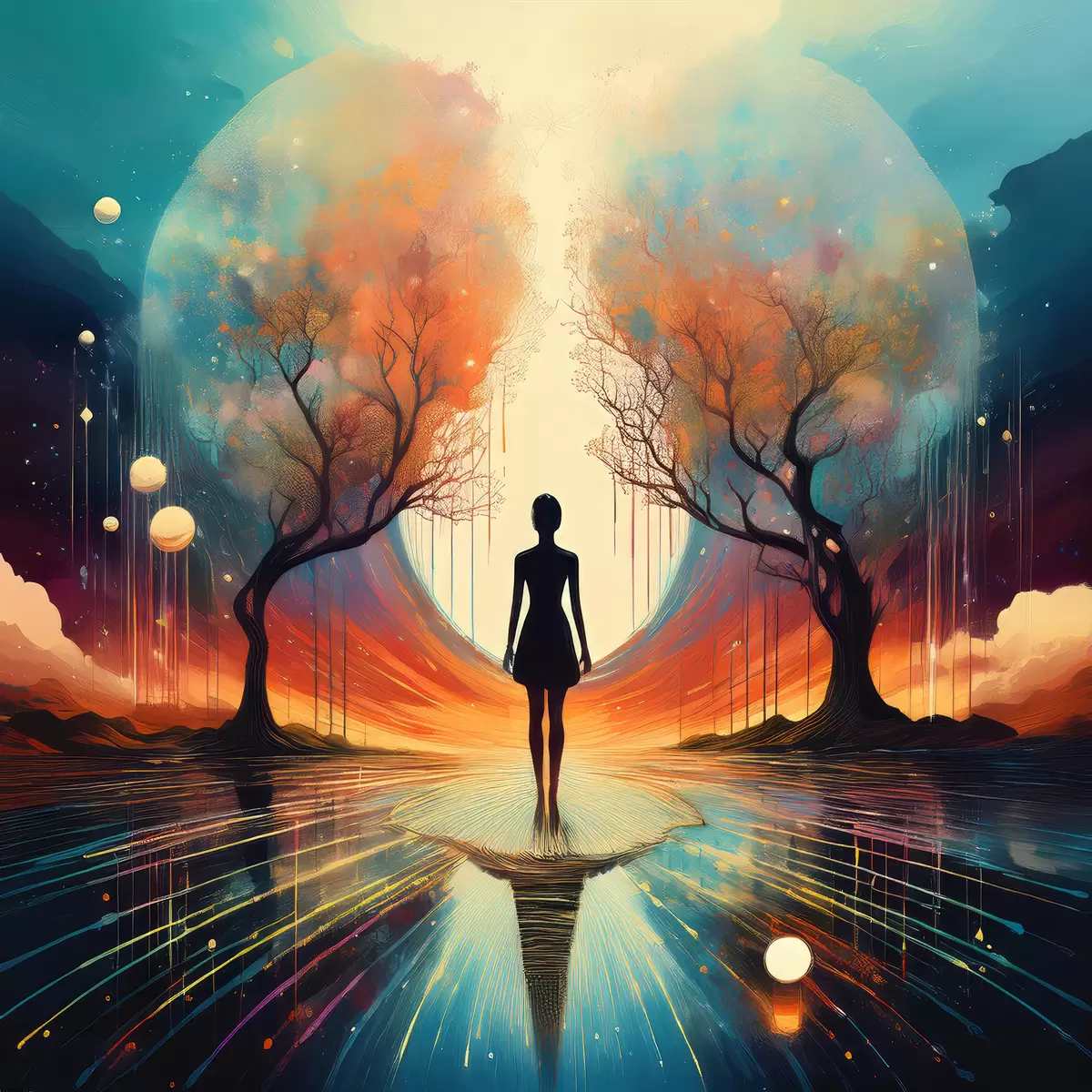 Glezna siluets starp kokiem, pašizziņa, pašrefleksija Nr s40713