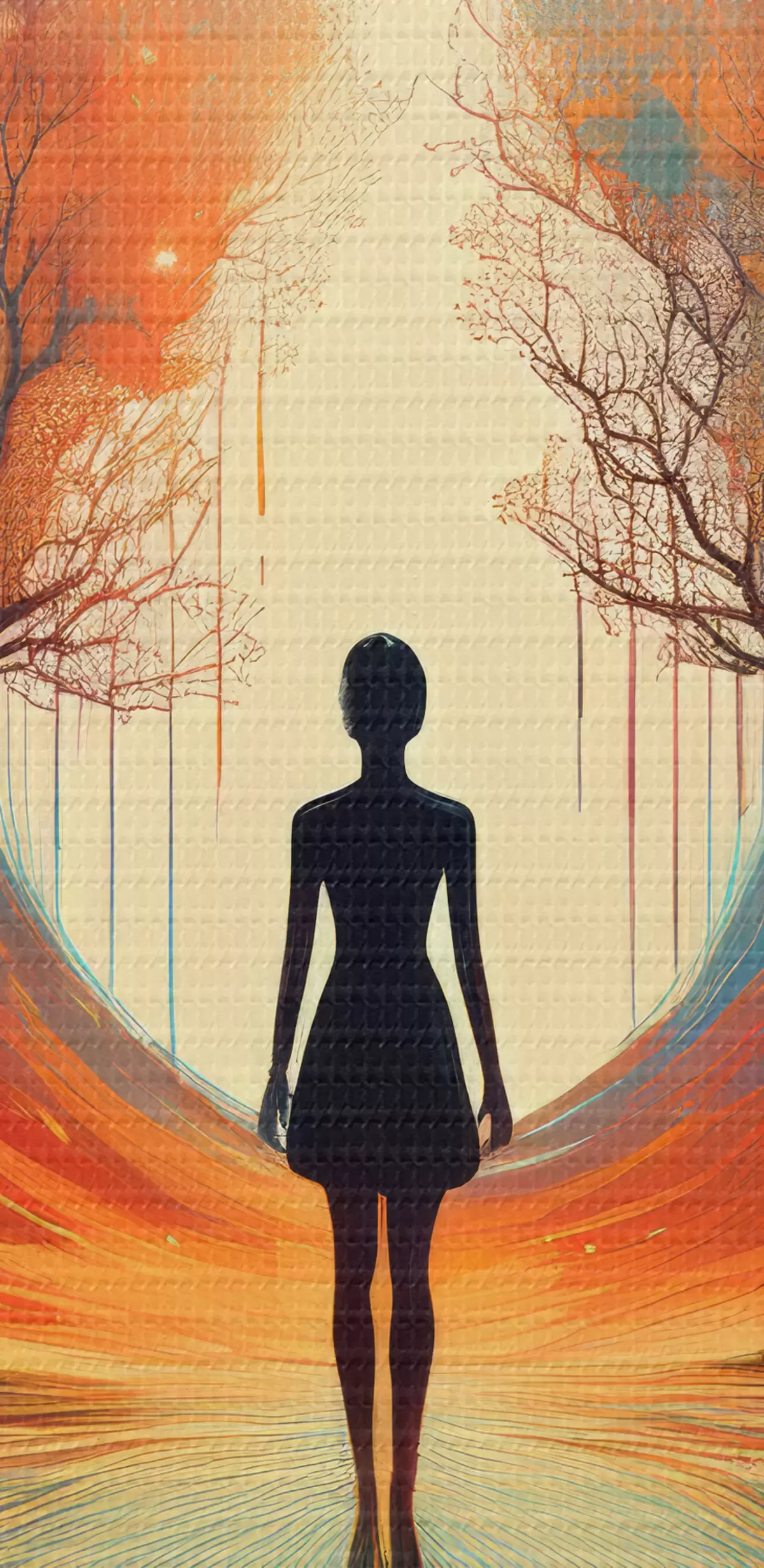 Glezna siluets starp kokiem, pašizziņa, pašrefleksija s40713