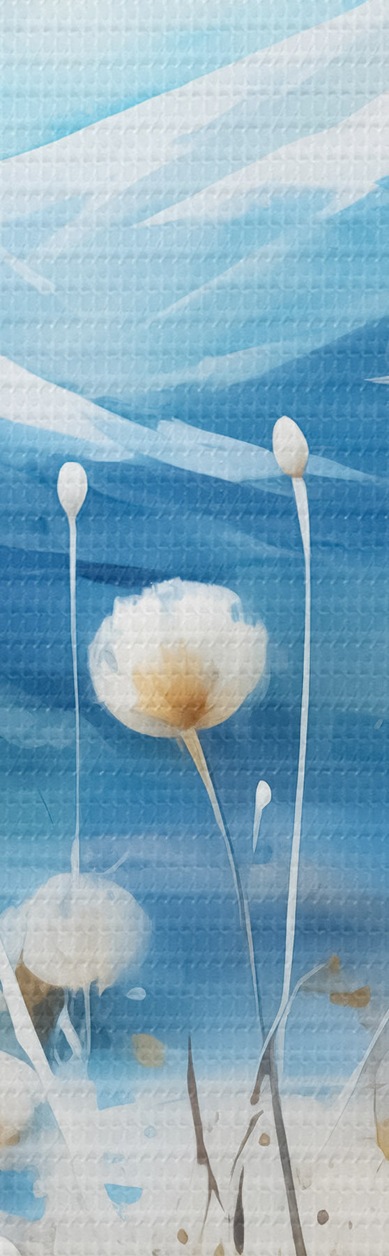Smalkais diegu pinums uz šī audekla atgādina profesionālu mākslinieku audeklu virsmu.