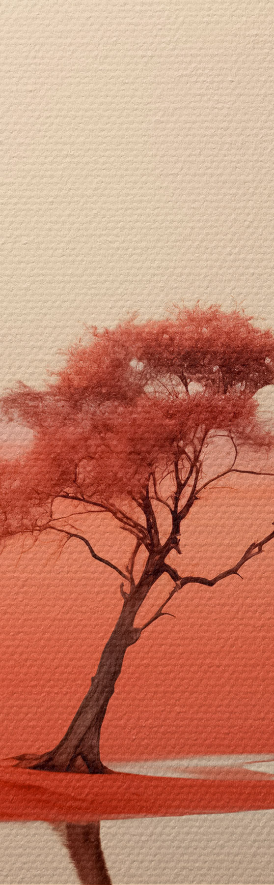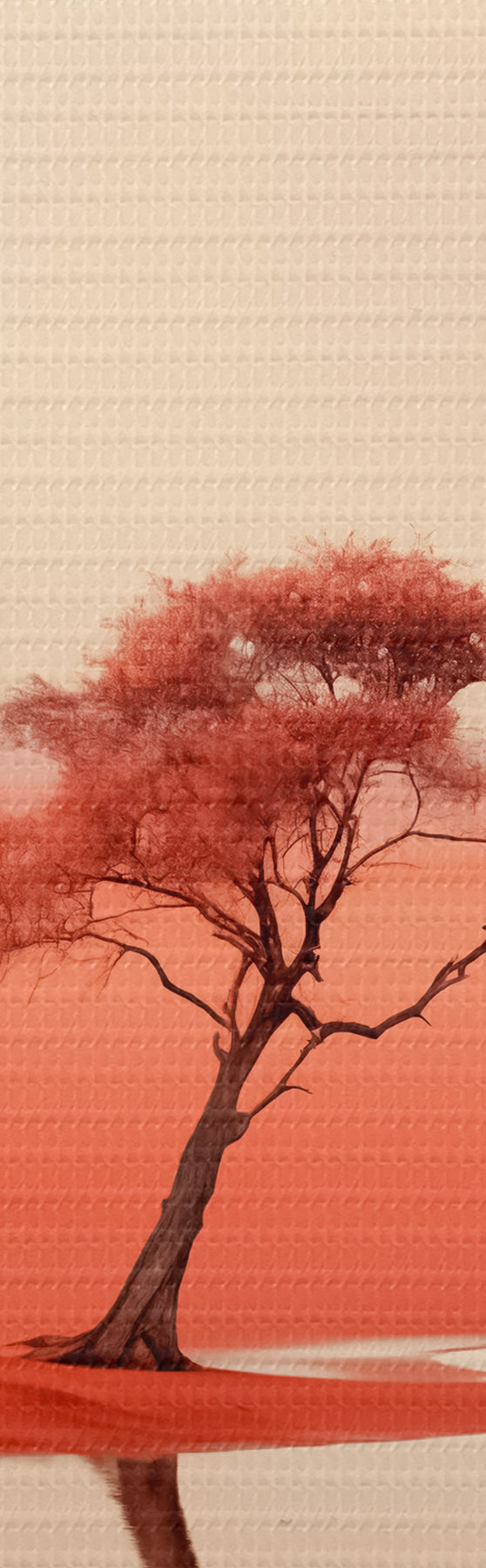 Glezna Minimālistisks ainavas koks pie upes, sarkana, pelēka krāsa s40722