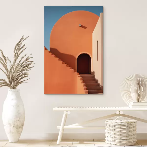 Glezna Minimālisma arhitektūras ēka ar pakāpieniem, zila, oranža krāsa Nr s40724