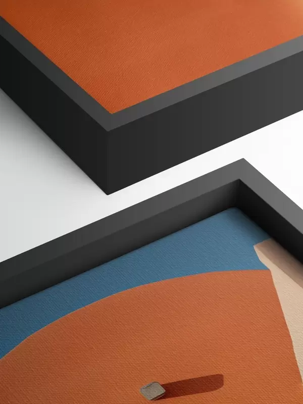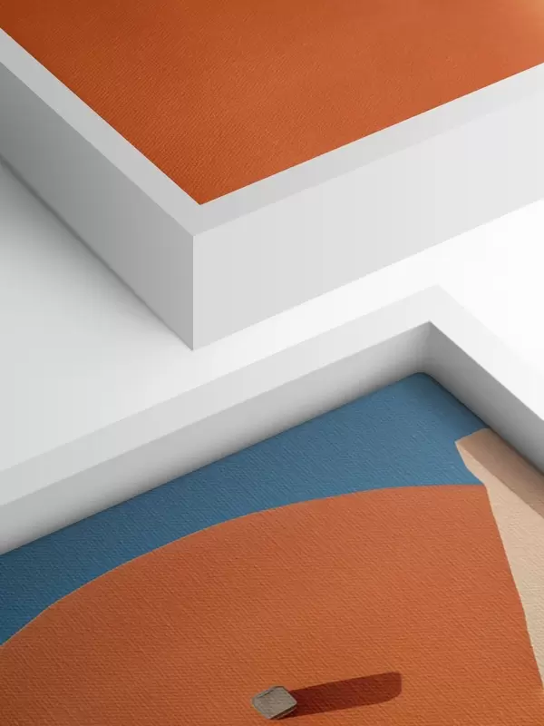 Glezna Minimālisma arhitektūras ēka ar pakāpieniem, zila, oranža krāsa s40724