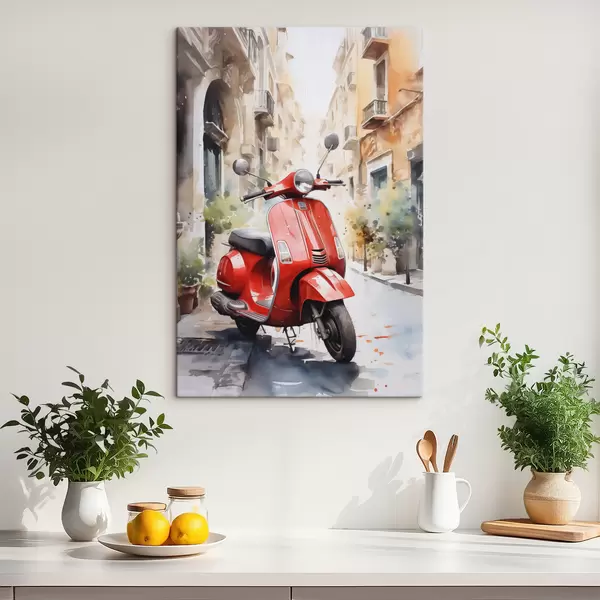 Glezna Sarkans motocikls uz Romas ielas akvarelis Nr s40728