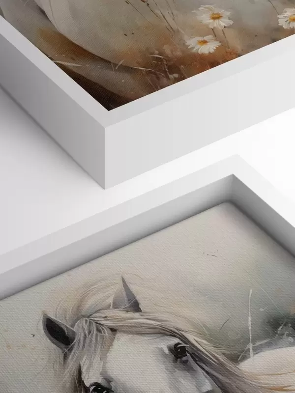 Glezna Baltu un pelēku zirgu pāris pie margrietiņām s40749