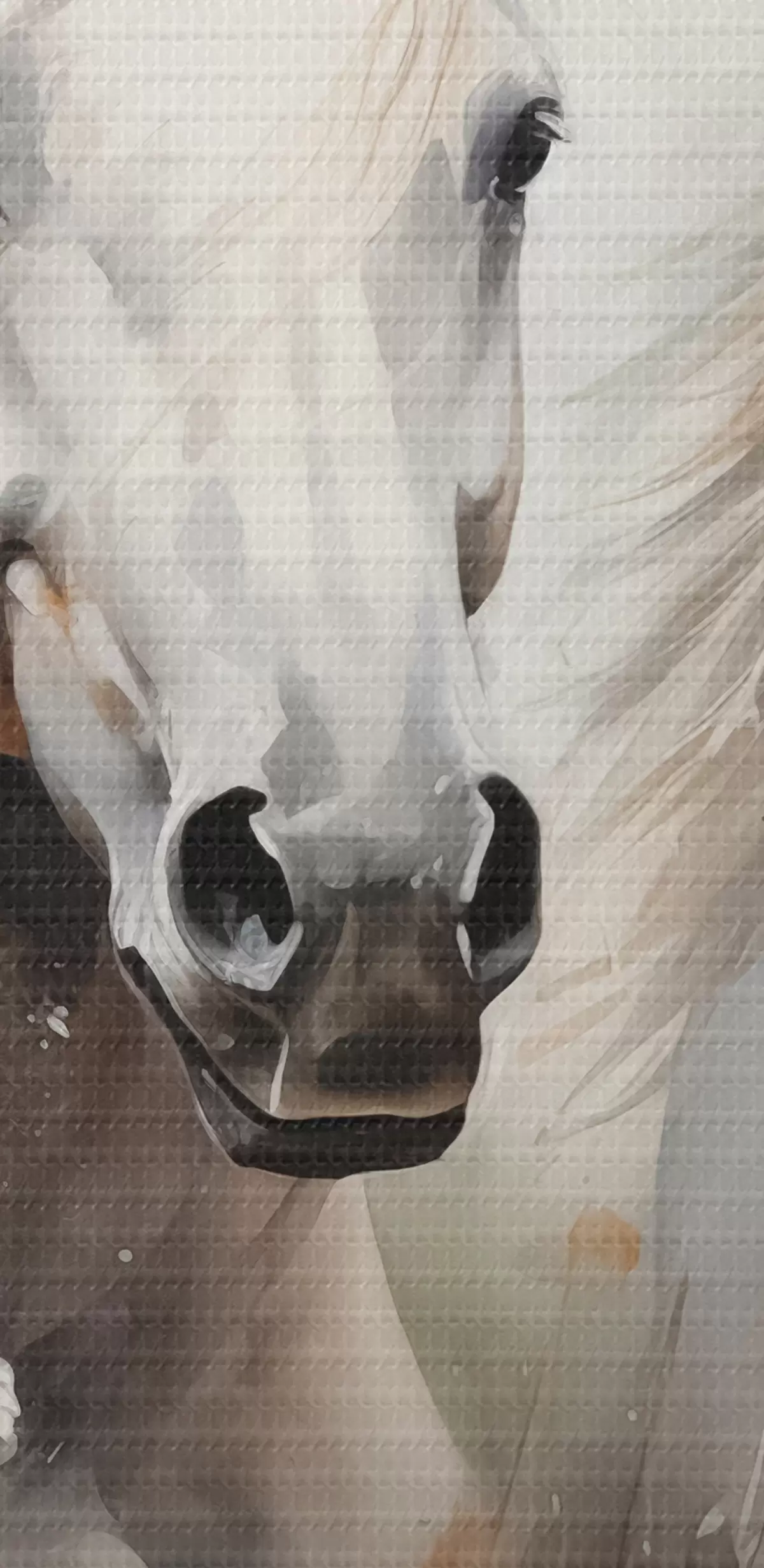 Glezna Baltu un pelēku zirgu pāris pie margrietiņām Nr s40749