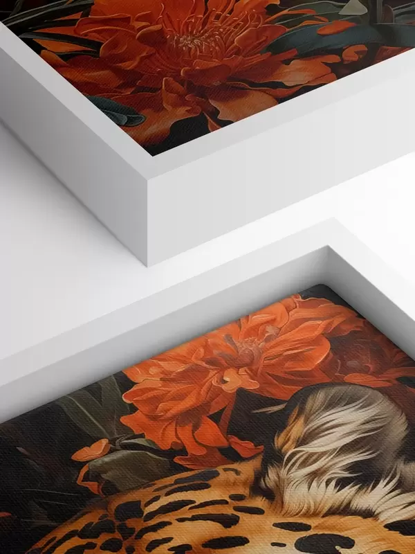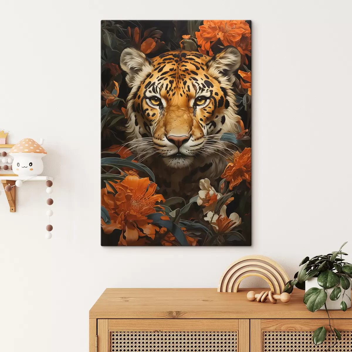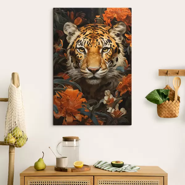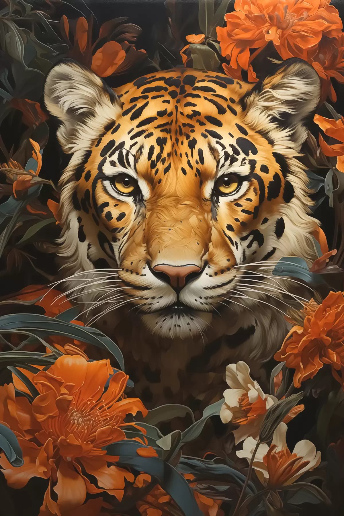Glezna Tīģera portrets tropu ziedu ielokā Nr s40757