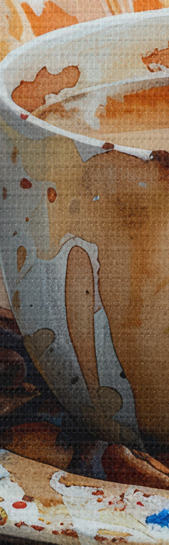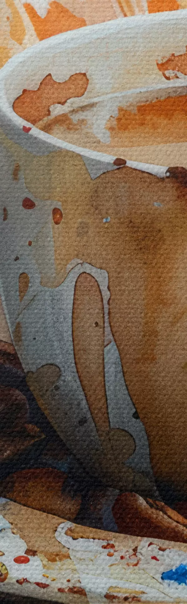 Glezna Kruasāns, rīts, kruasāns un kafijas tasīte, akvarelis Nr s40782