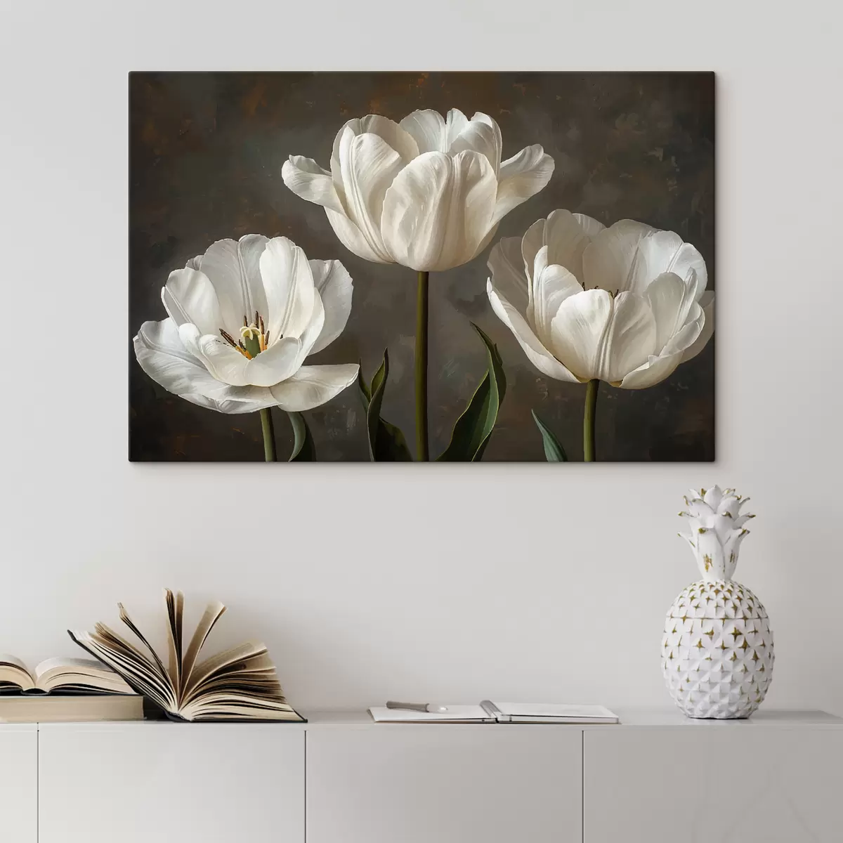 Glezna Lieli tulpju ziedi, baltas tulpes s40792