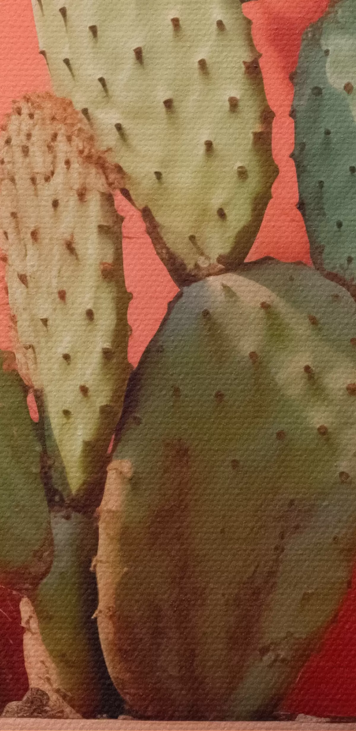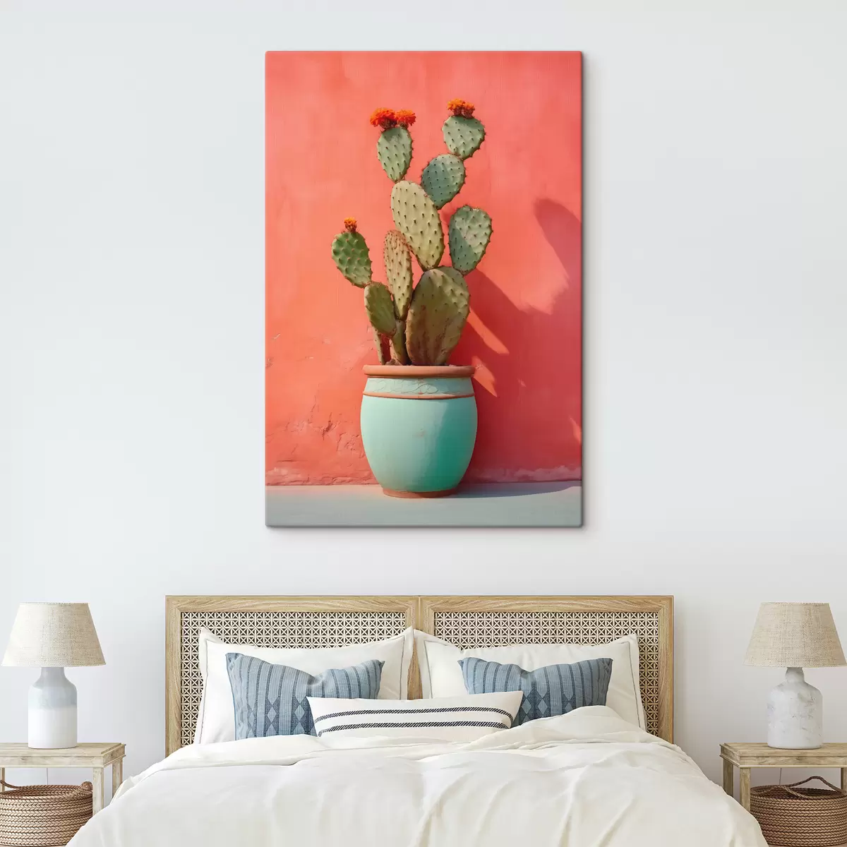 Glezna Kaktuss gaišā podā uz rozā sarkanas sienas fona Nr s40800