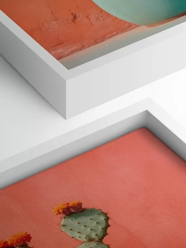 Glezna Kaktuss gaišā podā uz rozā sarkanas sienas fona s40800