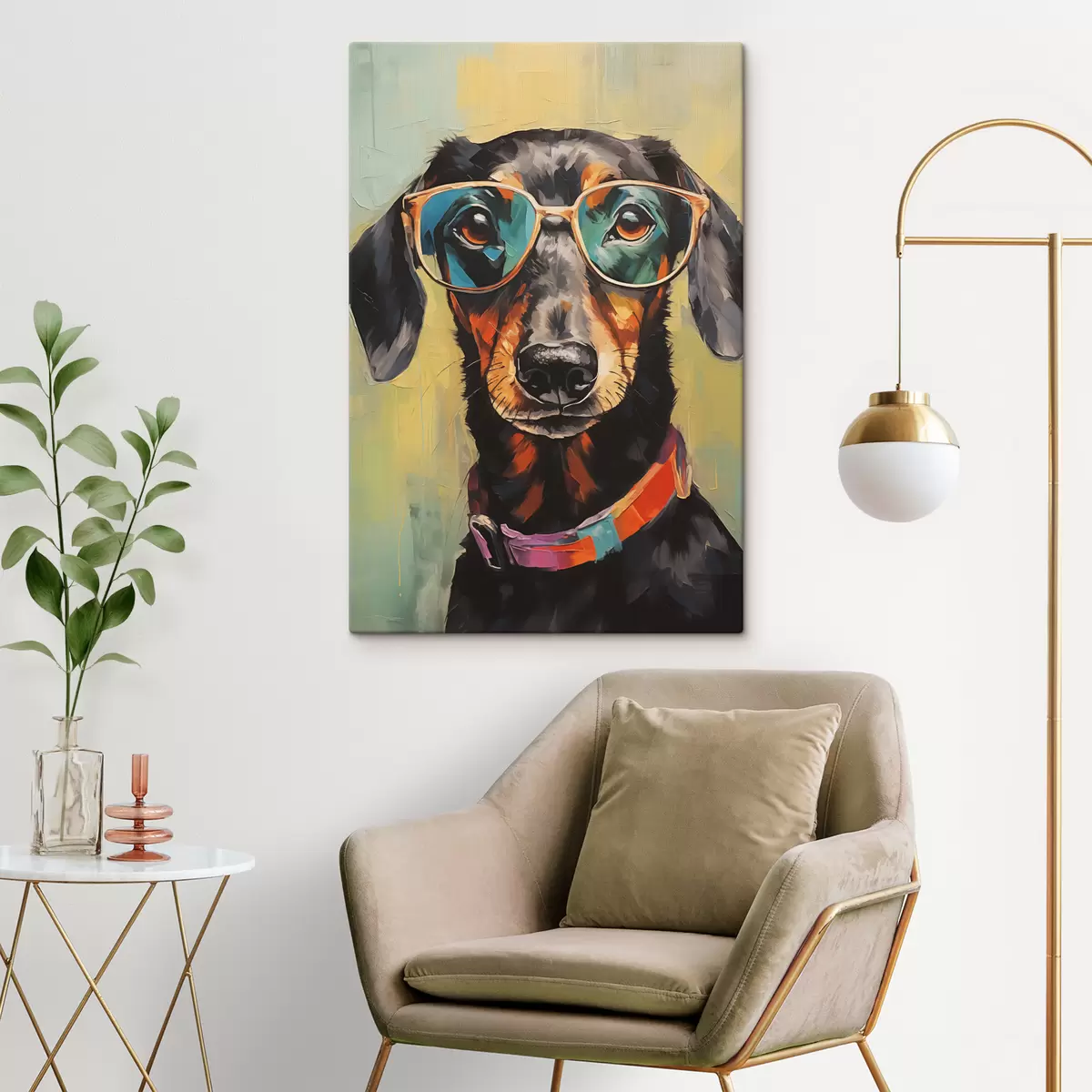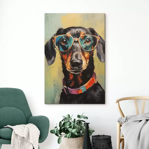 Glezna Melna takša portrets ar brillēm Nr s40803