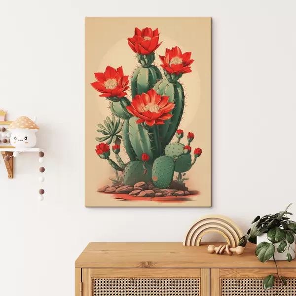 Glezna Ziedošs kaktuss ar sarkaniem ziediem Nr s40806
