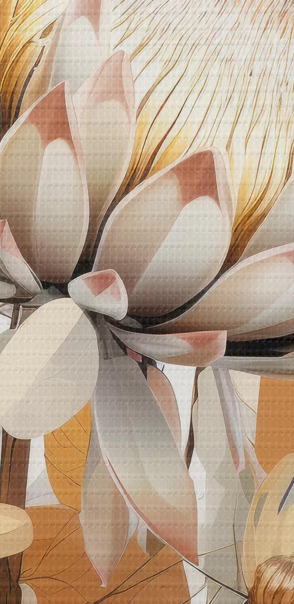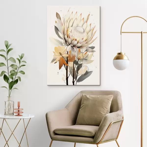 Glezna Skaisti proteja ziedi ar sulīgām lapām, maigas smilškrāsas krāsas, kokvilna s40817