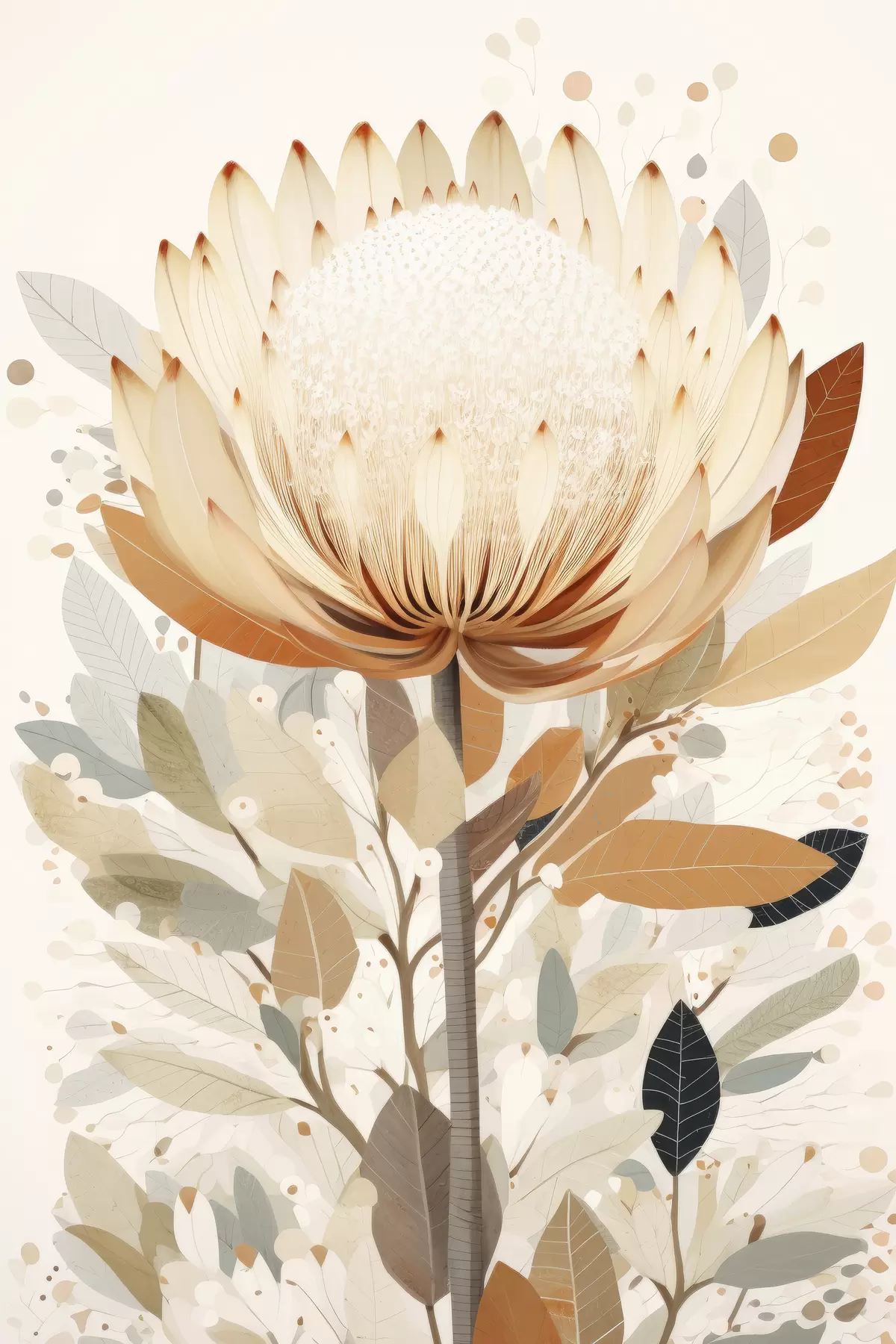 Glezna Ziedu krāsa maigā smilškrāsu paletē, ziedu abstrakcija s40818