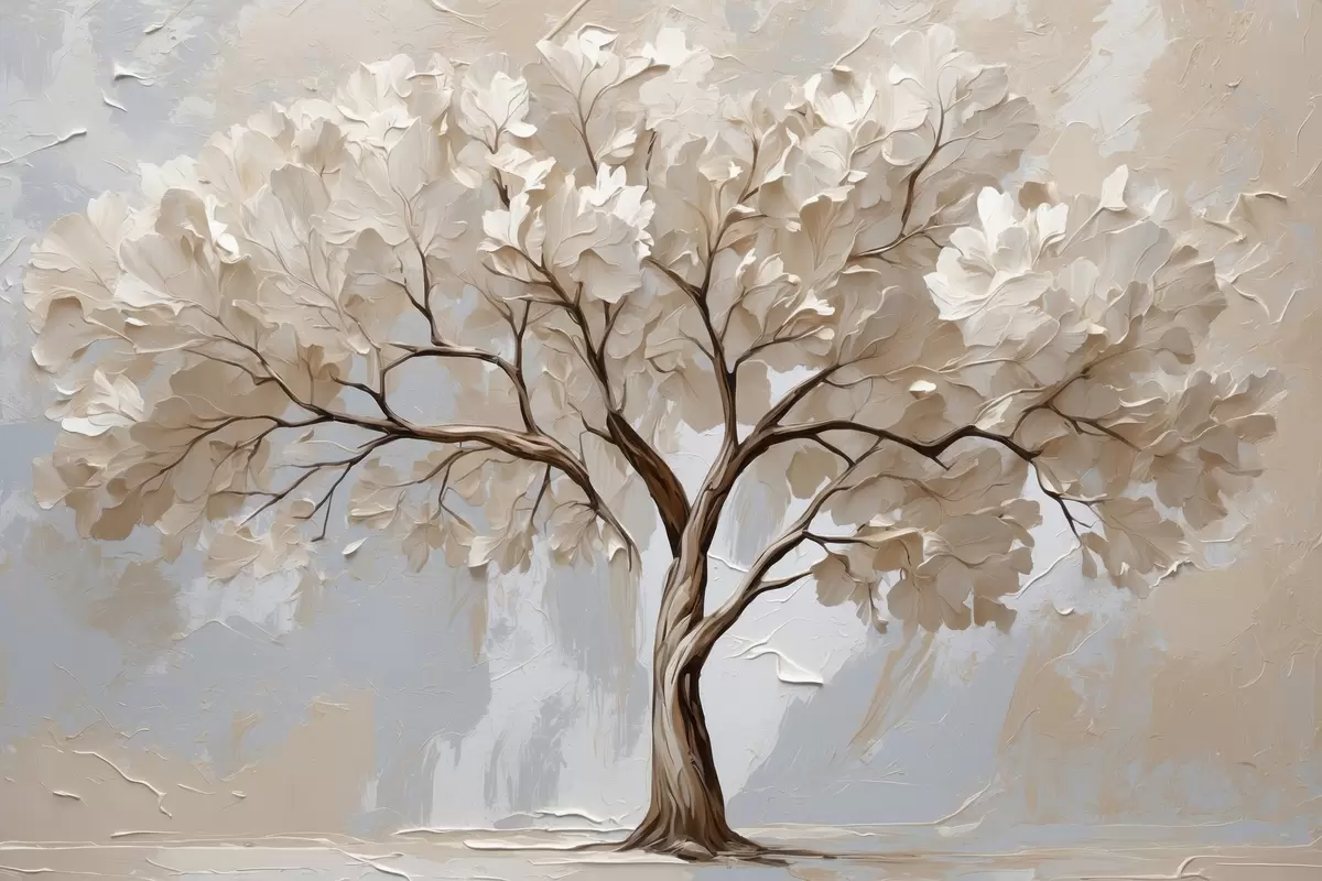 Glezna Balts koks uz abstrakta eļļas fona Nr s40860